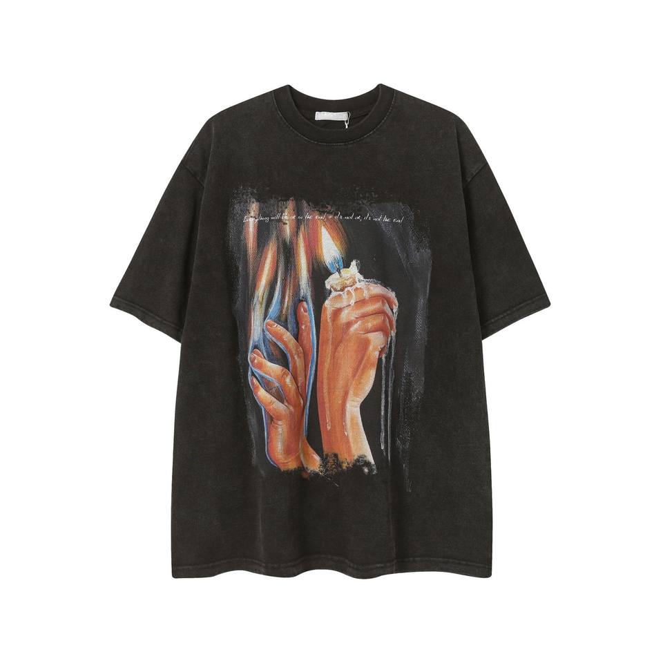 Streetwear Collector's Tee Gothic Prayer Oil Painting Print Enzyme Washed Vintage Finish Oversize T-Shirt