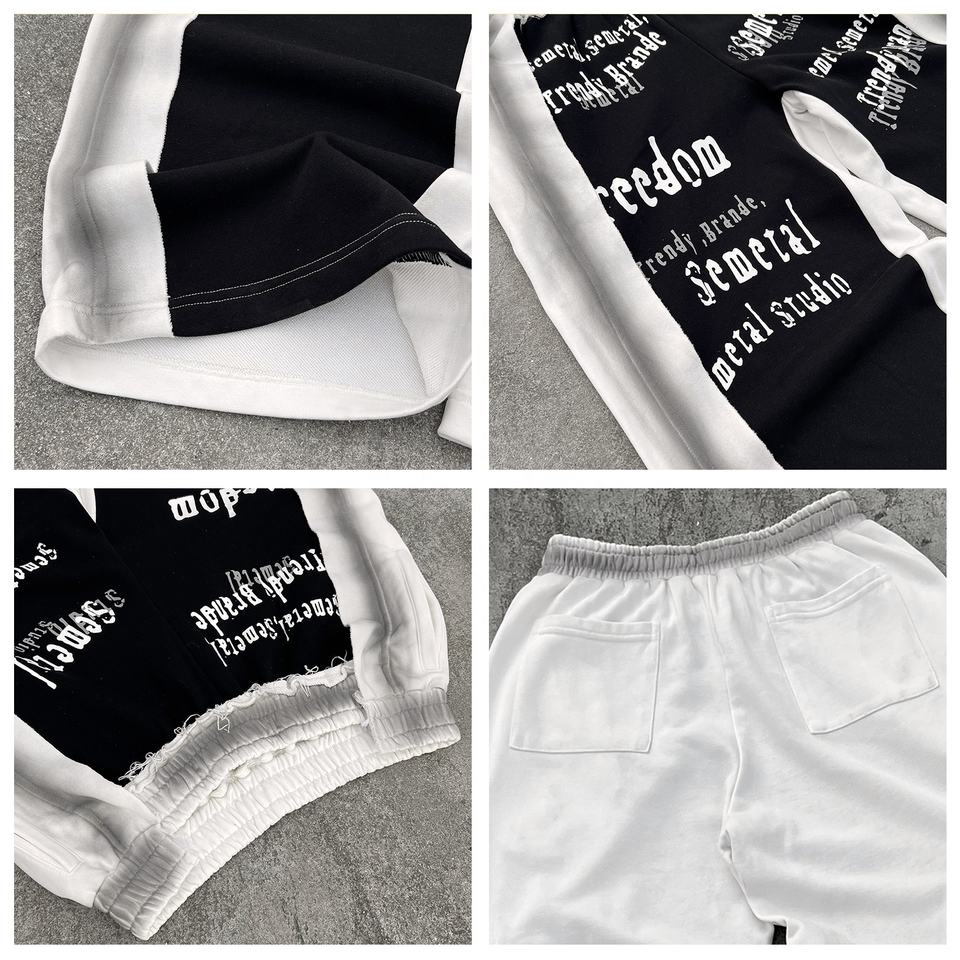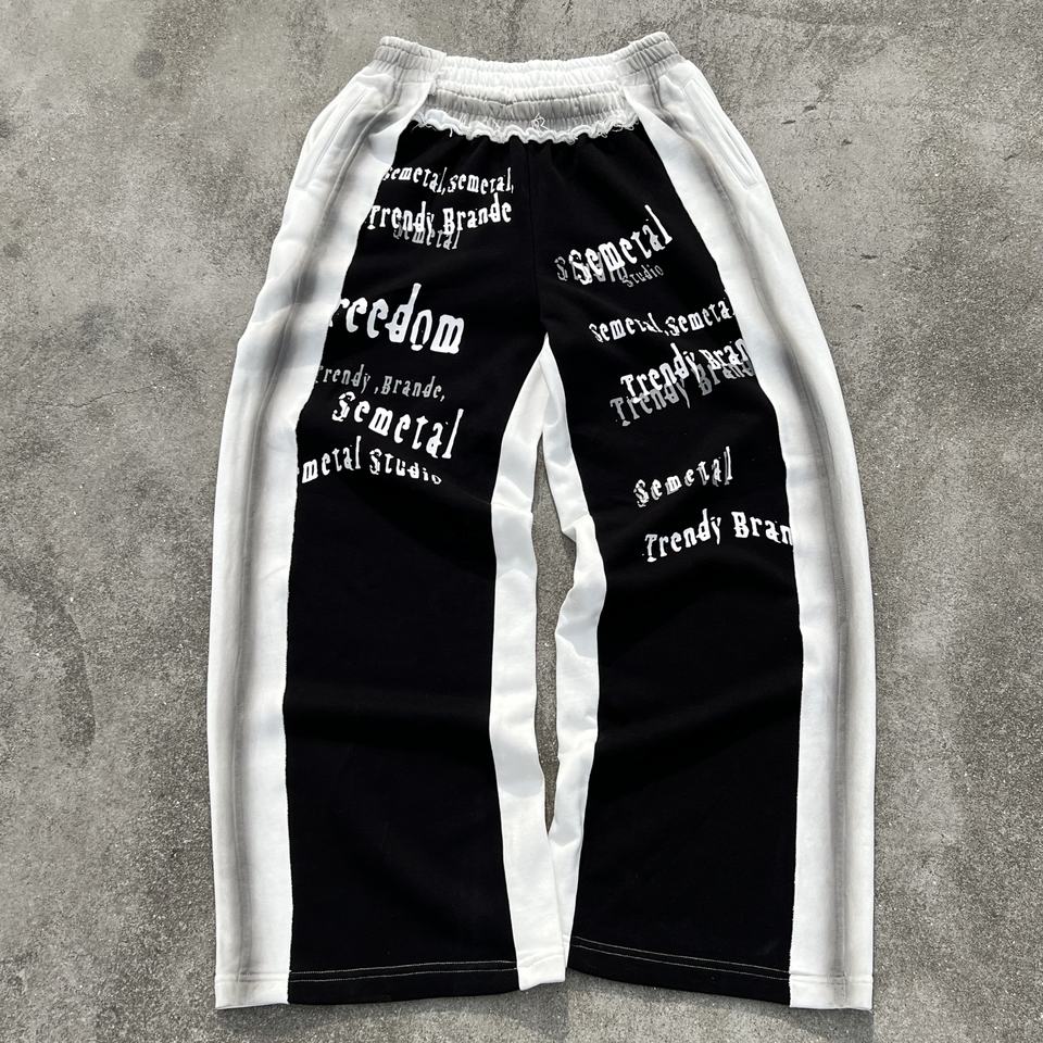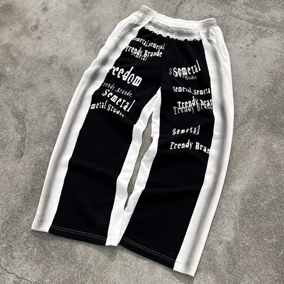 Streetwear Cotton Print Pants Manufacturer Custom Straight Leg Stacked Sweat Pants Baggy Heavyweight Oversized Sweatpants Men