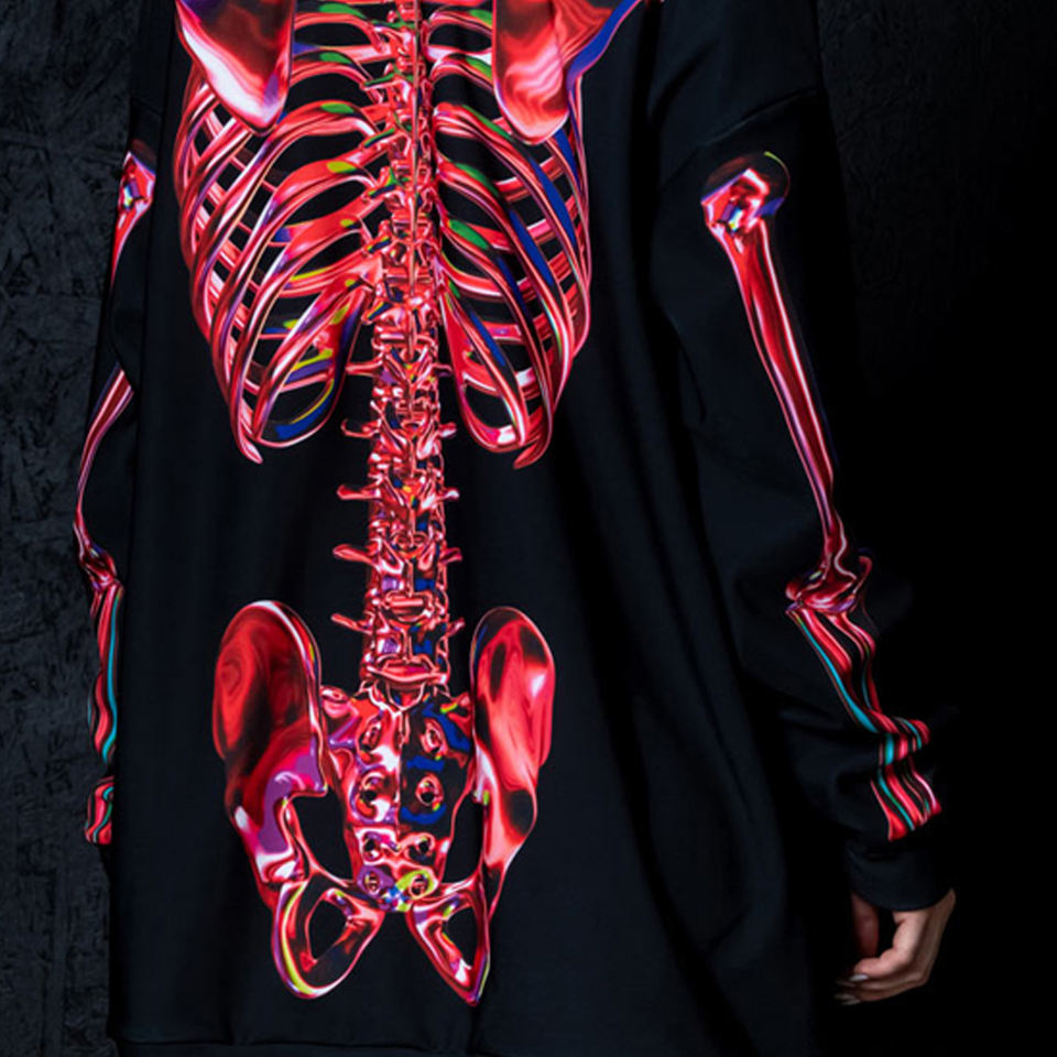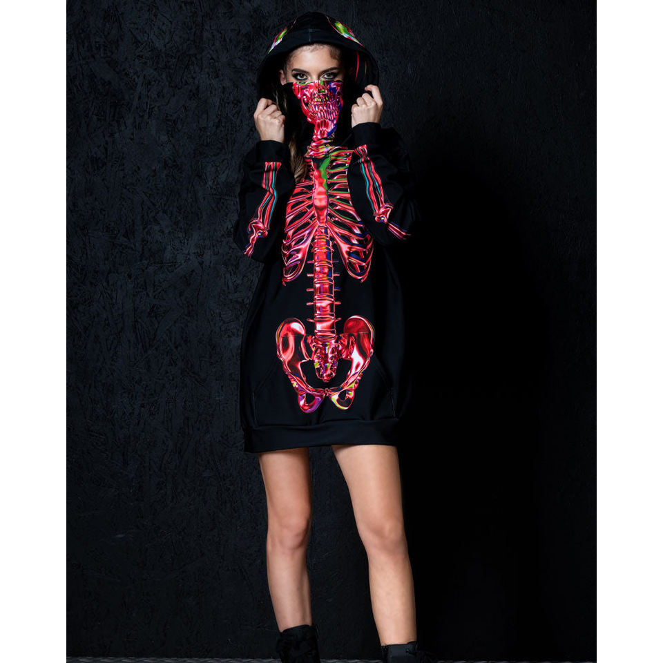 Streetwear Custom Logo Skull Halloween Hoodie Oversized Skeleton Thick Full Zip up Hoodies Men