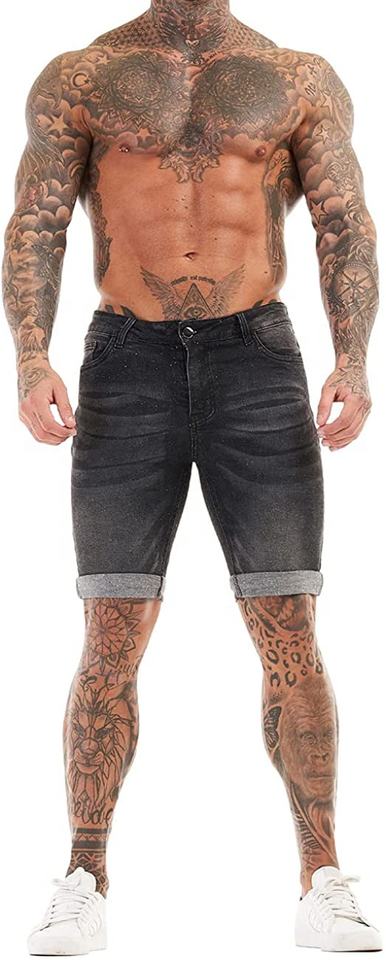 Streetwear Custom Patches Logo Men Denim Shorts With Custom Embossed Design Shorts Printed Chain And Stones Jean Shorts For Men