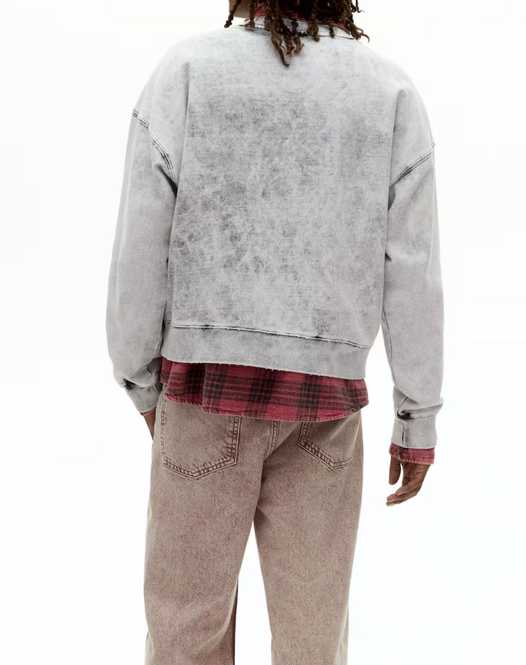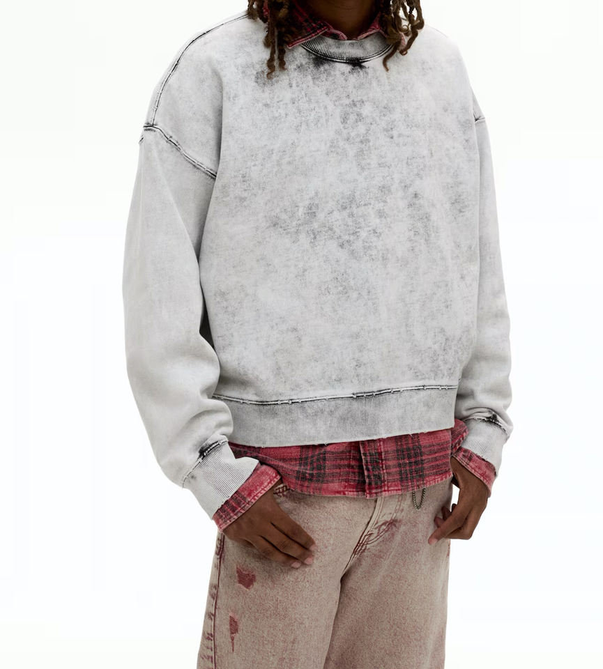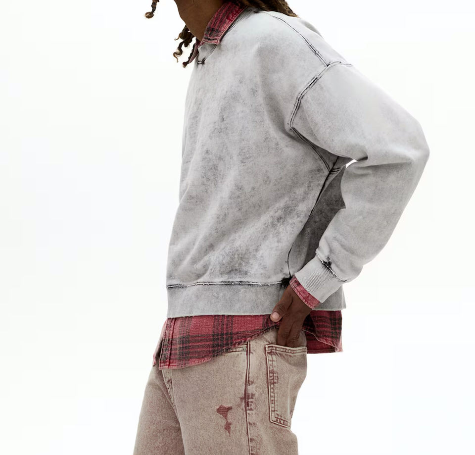 Streetwear Custom Raw Hem Graphic Heavy Cotton Tees Vintage Acid Wash Sweatshirts Men's Double Layer Long Sleeve Shirts