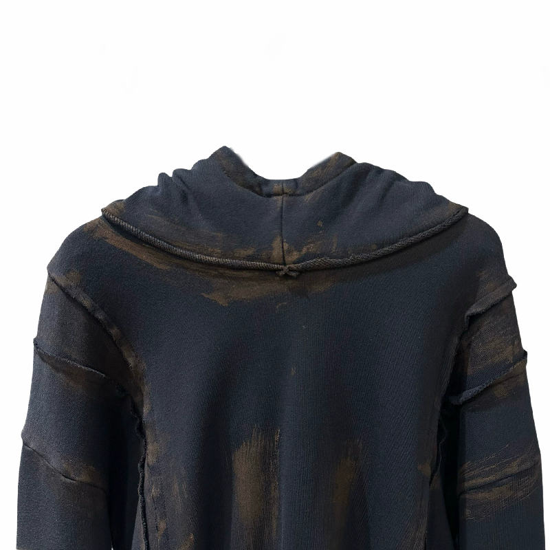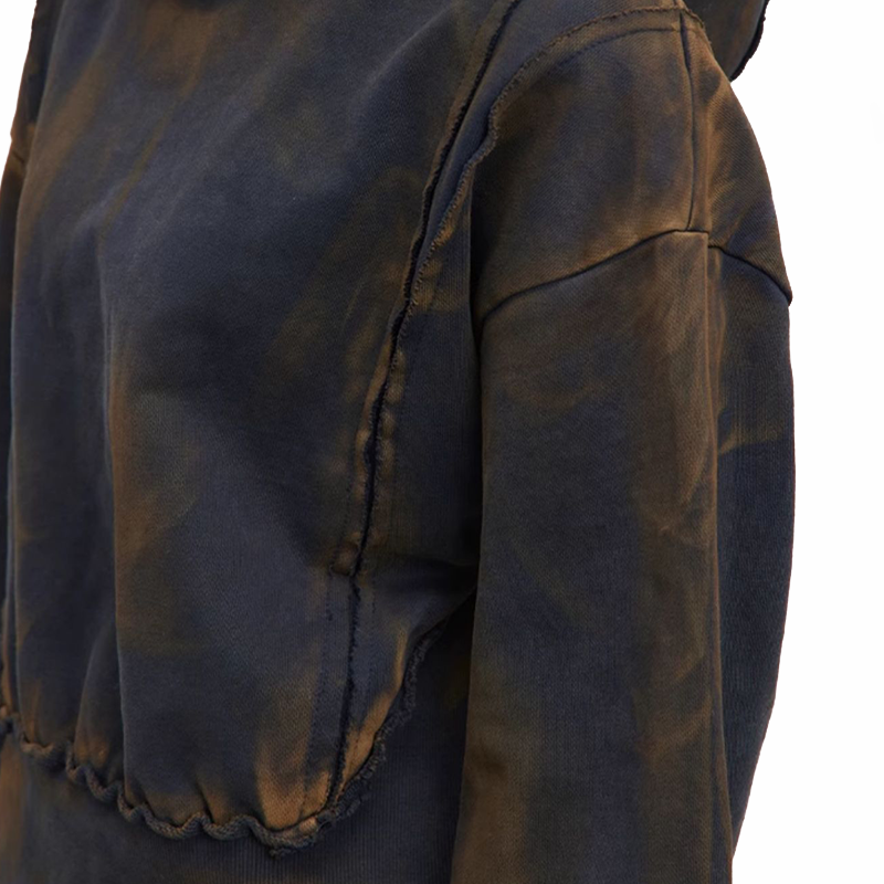 Streetwear Custom Unisex Double Layer Hood Distress Vintage Acid Wash Zipper Hoodie for Men