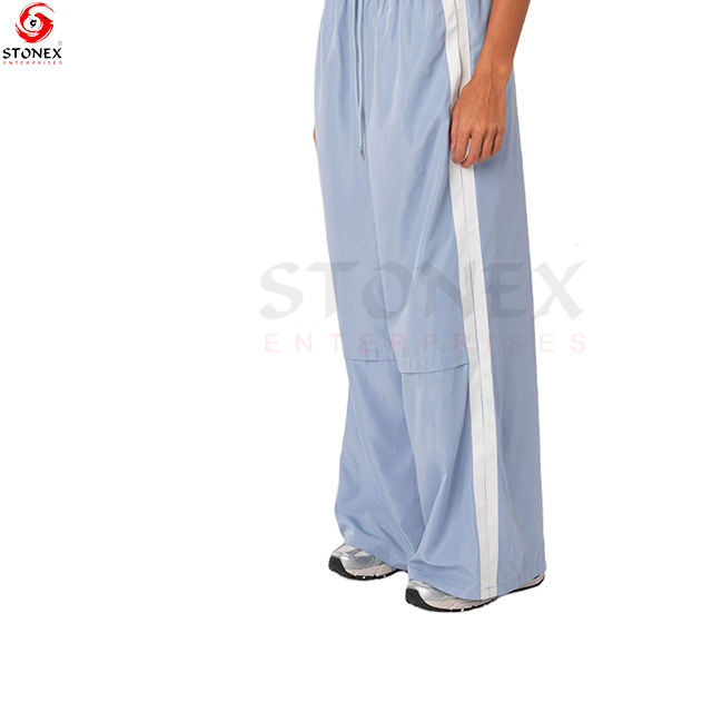Streetwear Drawstring Waistband Side Stripe Nylon Track Pants Loose Straight Leg Women's Track Pants