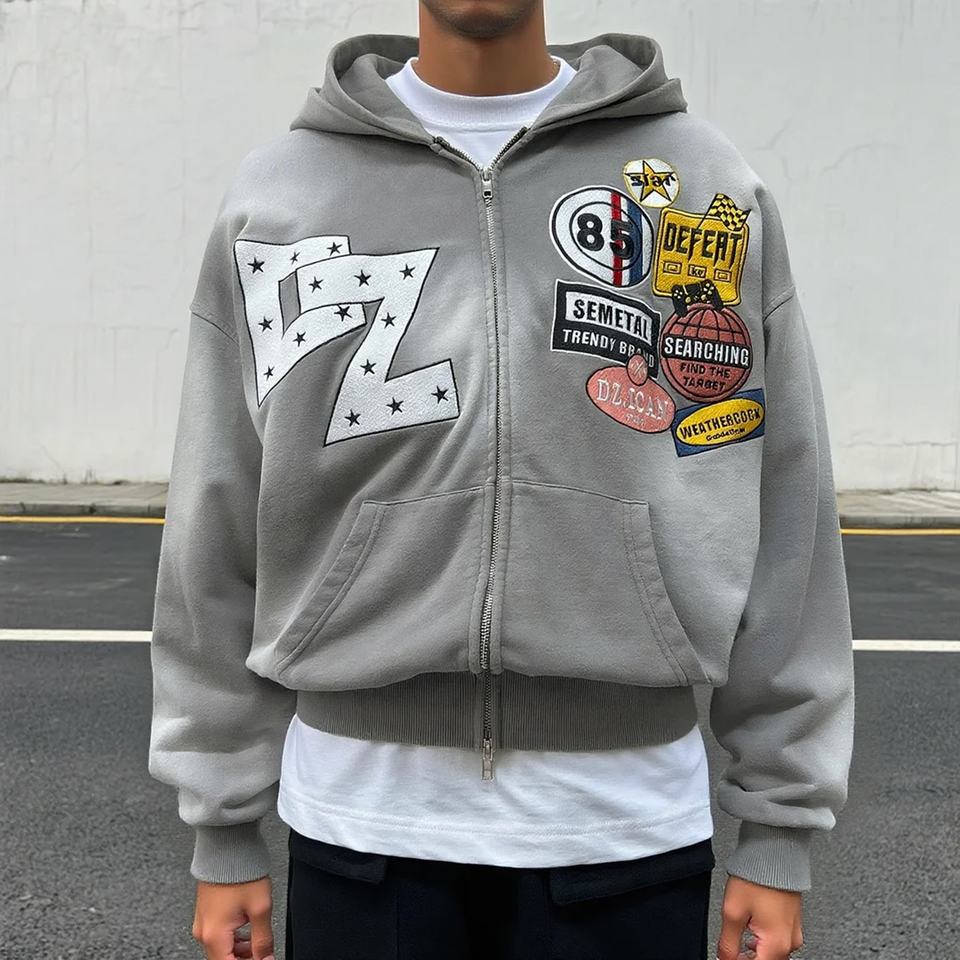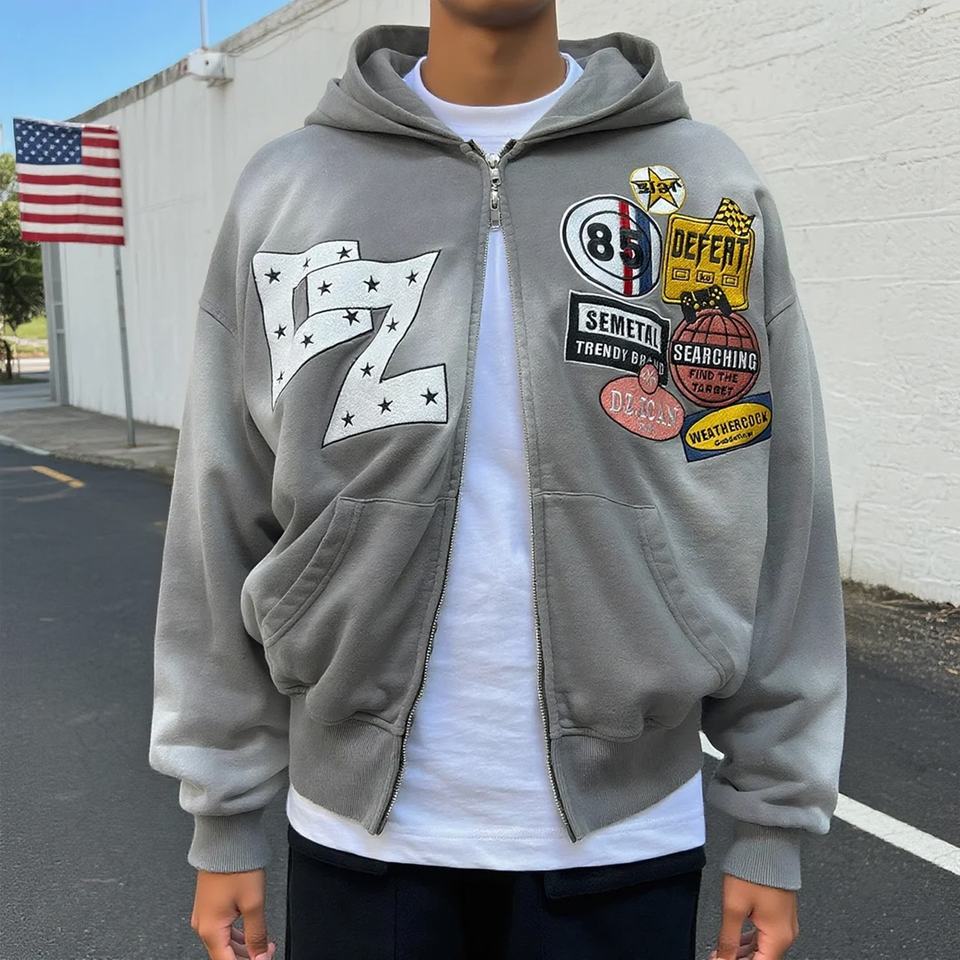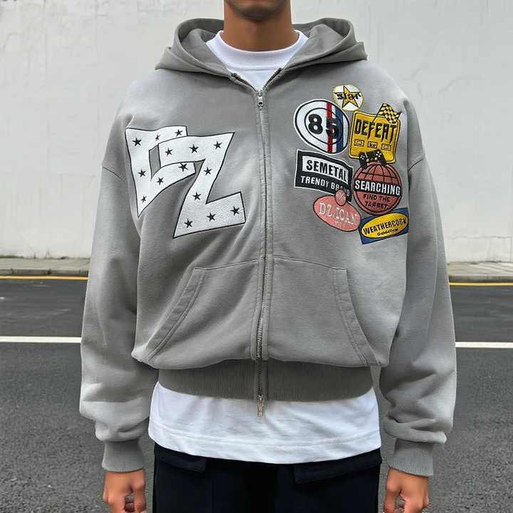 Style:Fashion, Hip Hop, Oversized, STREETWEAR, Unisex, Boxy, HIGH STREET, Pullover, zipper-up, Vintage