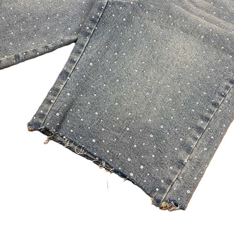 Men's Vintage Acid Wash Denim Shorts Streetwear Hip Hop Baggy with Diamonds 100% Cotton Solid Pattern Manufacturer Distressed