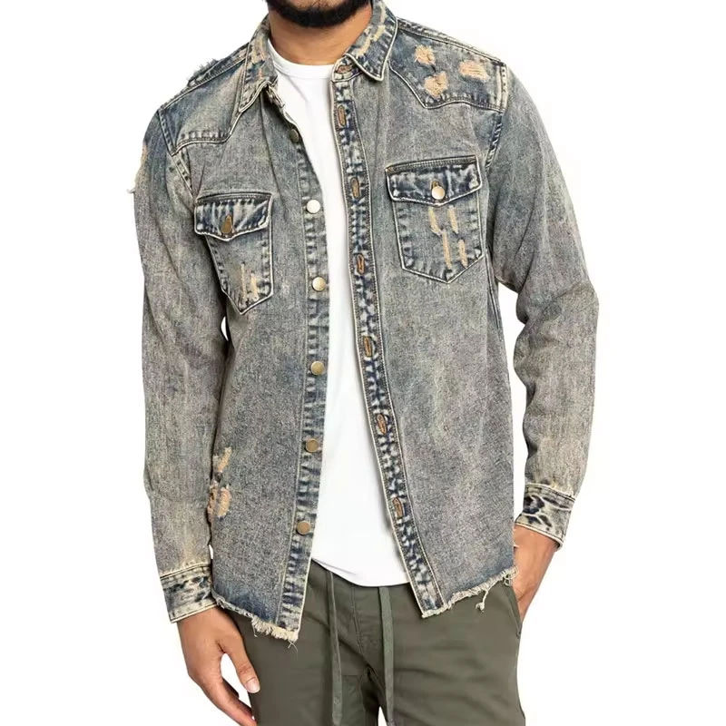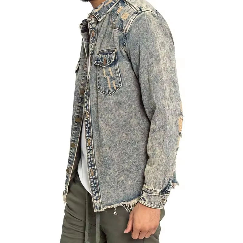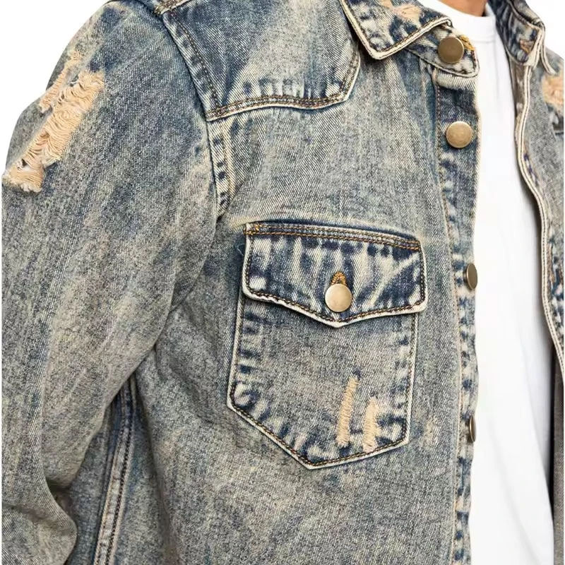 Streetwear Mens Denim Jacket Ripped Design Casual Cotton Jean Coat Fashion Print Black Blue Pink Workwear