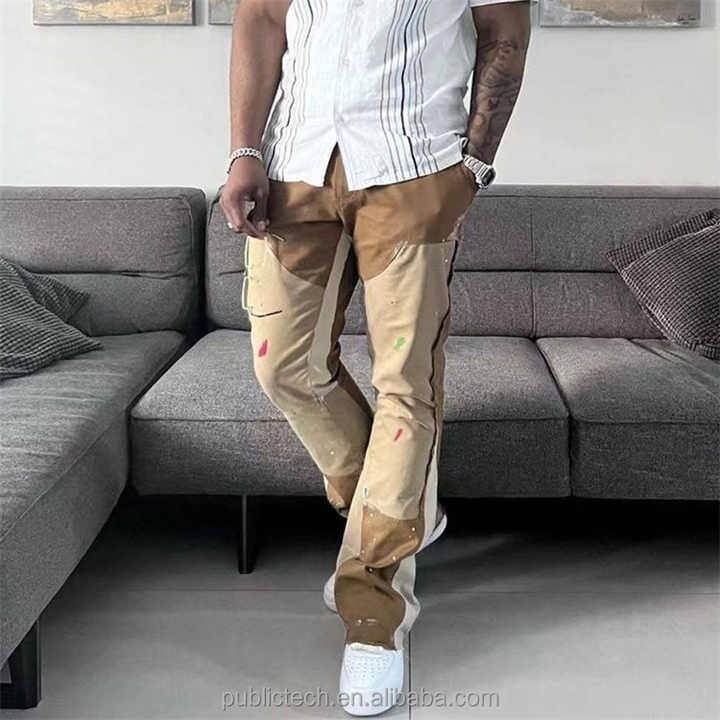 Streetwear Mens Jogger Pants Sweatpants Patchwork Trousers Custom Paint Splatter Raw Edge Hem Flare Pants for Men