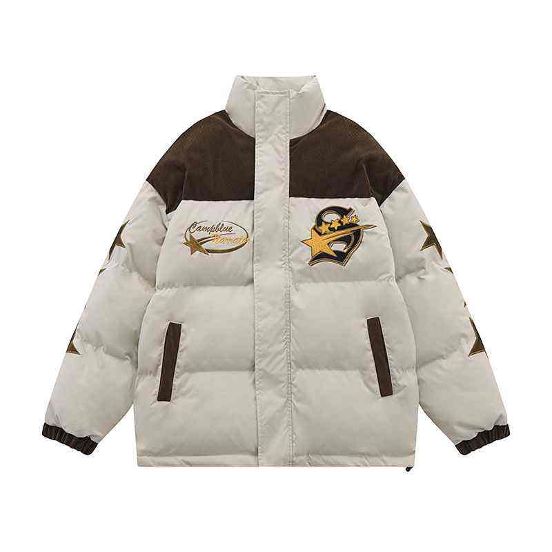 Streetwear Nylon Quilted Down Parkas Y2K Winter Cotton Patchwork Embroidery Padded Warm Loose Puffer Jacket