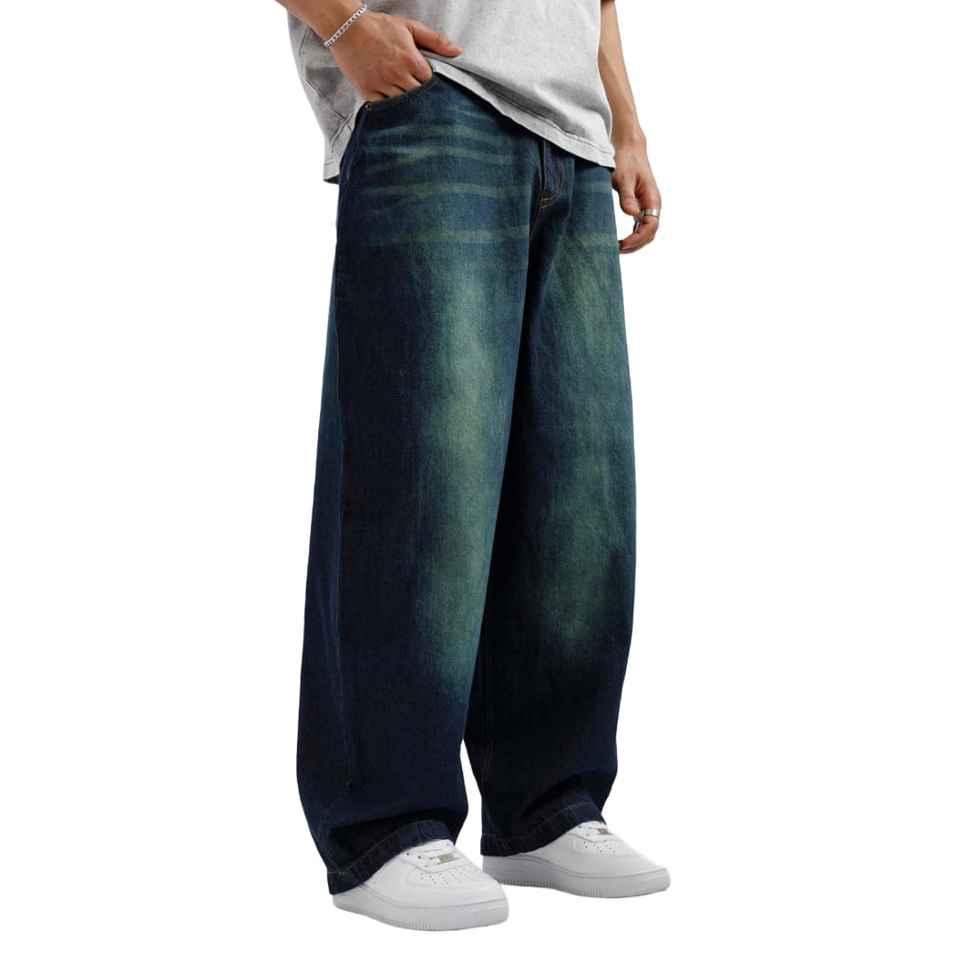 Streetwear Stack Denim Pants Cotton Baggy Stacked Jeans Men Long Straight Pants Washed Wide Leg Trousers for Men's Baggy Jeans