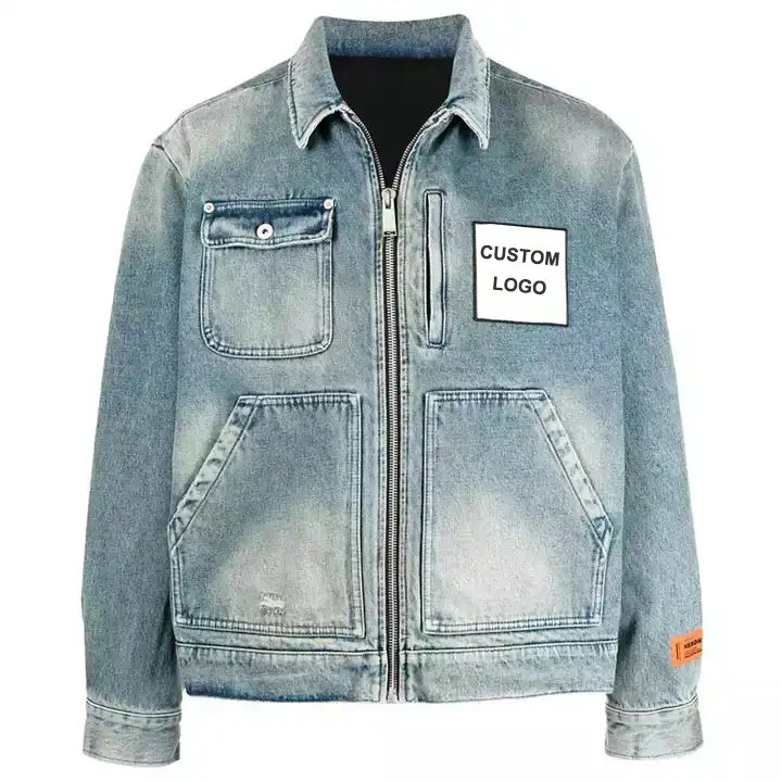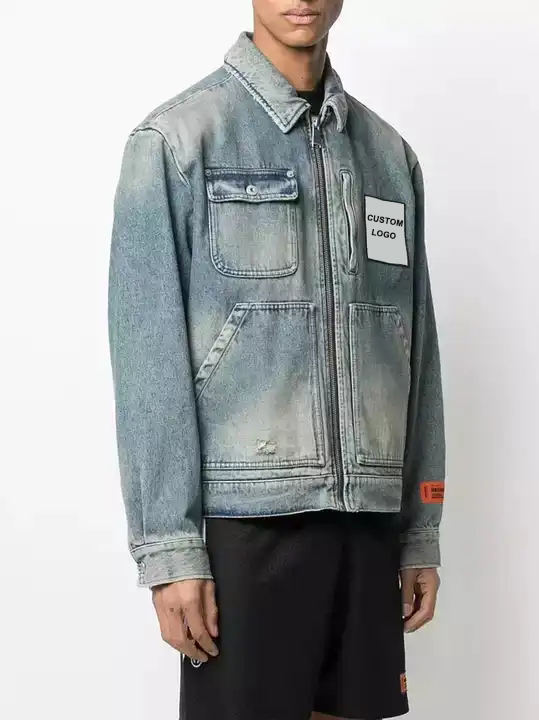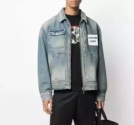 Streetwear Studded Cropped Ripped Denim Cowboy Jacket for Men Winter 100% Cotton Customizable Casual