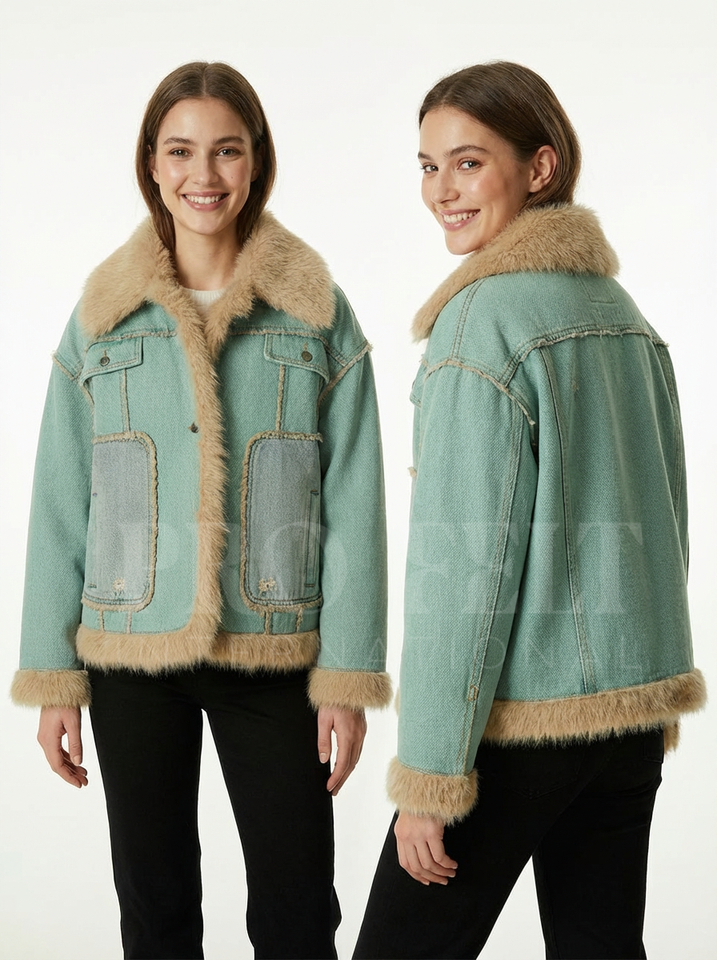 Streetwear Style Custom High Quality Fur Collar Denim Jacket Vintage Washed Warm Winter Casual Fashion Jean Jacket For Women's