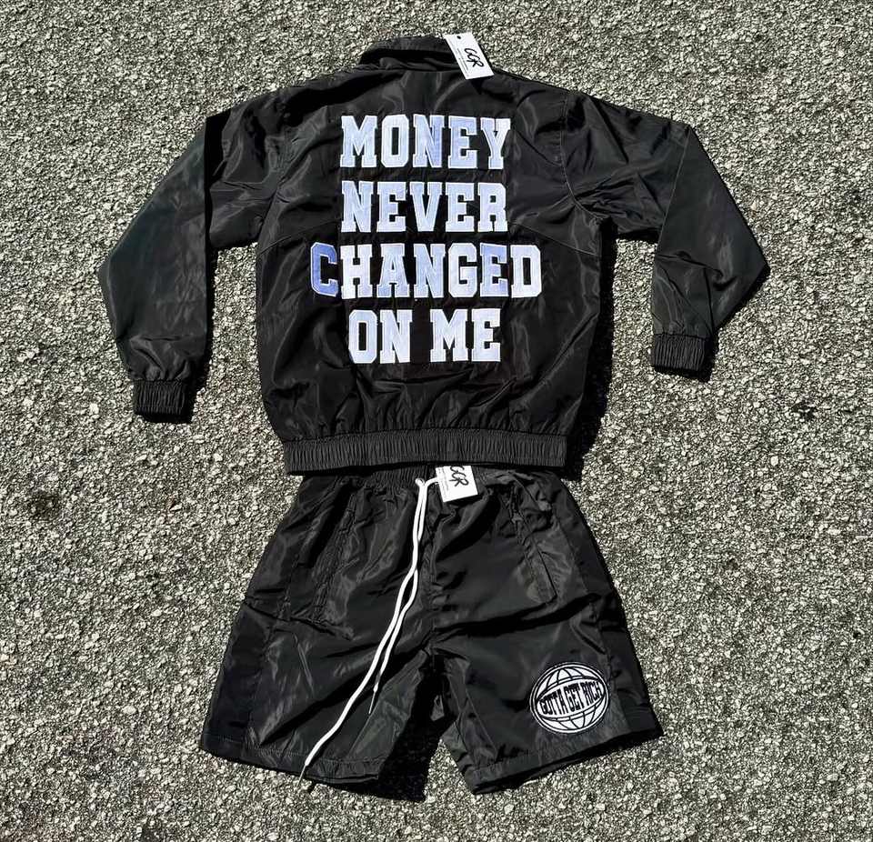 Streetwear Style Men's Custom Logo Tracksuit Windbreaker Jacket and Shorts Two Piece Set