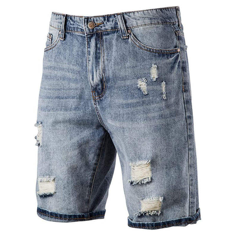 Streetwear Vintage Washed Ripped Denim Jean Shorts Manufacturer Custom Baggy Blank Jeans Short Men OEM Serviced