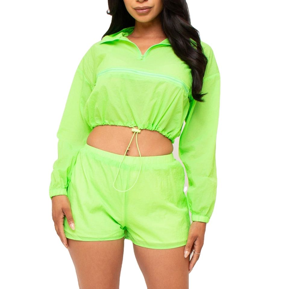 Streetwear Women Windbreaker Shorts and Jacket Sets Front Zip 2 Piece Set Customizable Women's Windbreaker Shorts Set 2026
