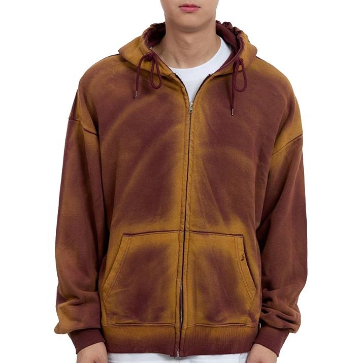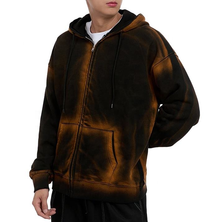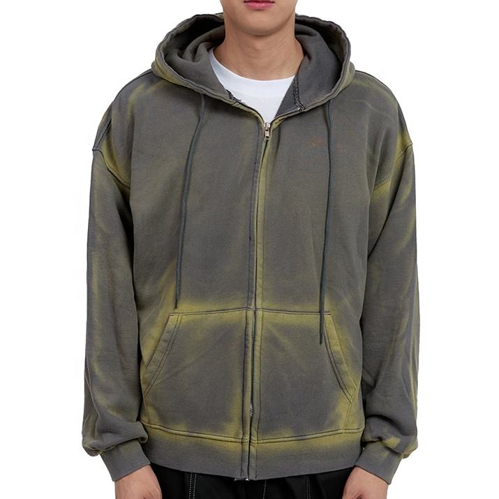 Streetwear Y2K Fashion Men's Vintage Washed Zipper Hoodies for Man, 100% Cotton Stylish Men Clothing Custom Made Jackets