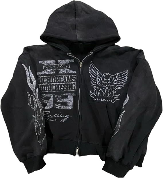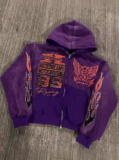 Streetwear Zip Up Hoodie Grunge Jackets Streetwear Y2k Unisex Emo Vintage 2000s Outerwear Oversized Graphic Hoodies Star Rapper
