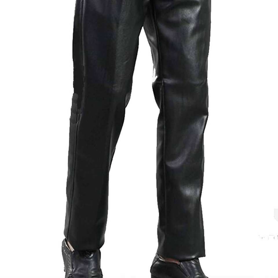 Streetwear black leather pants designer flare stacked jeans heavyweight material trendy modern fashion stylish wear
