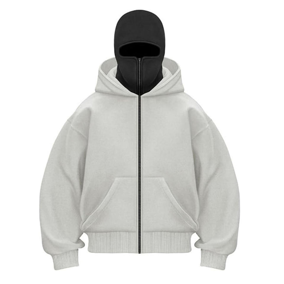 Streetwear Fleece Balaclava Zip Hoodie 100% Cotton Embroidered Winter Warm Eco-Friendly Unisex Custom Made Face Cover Jacket