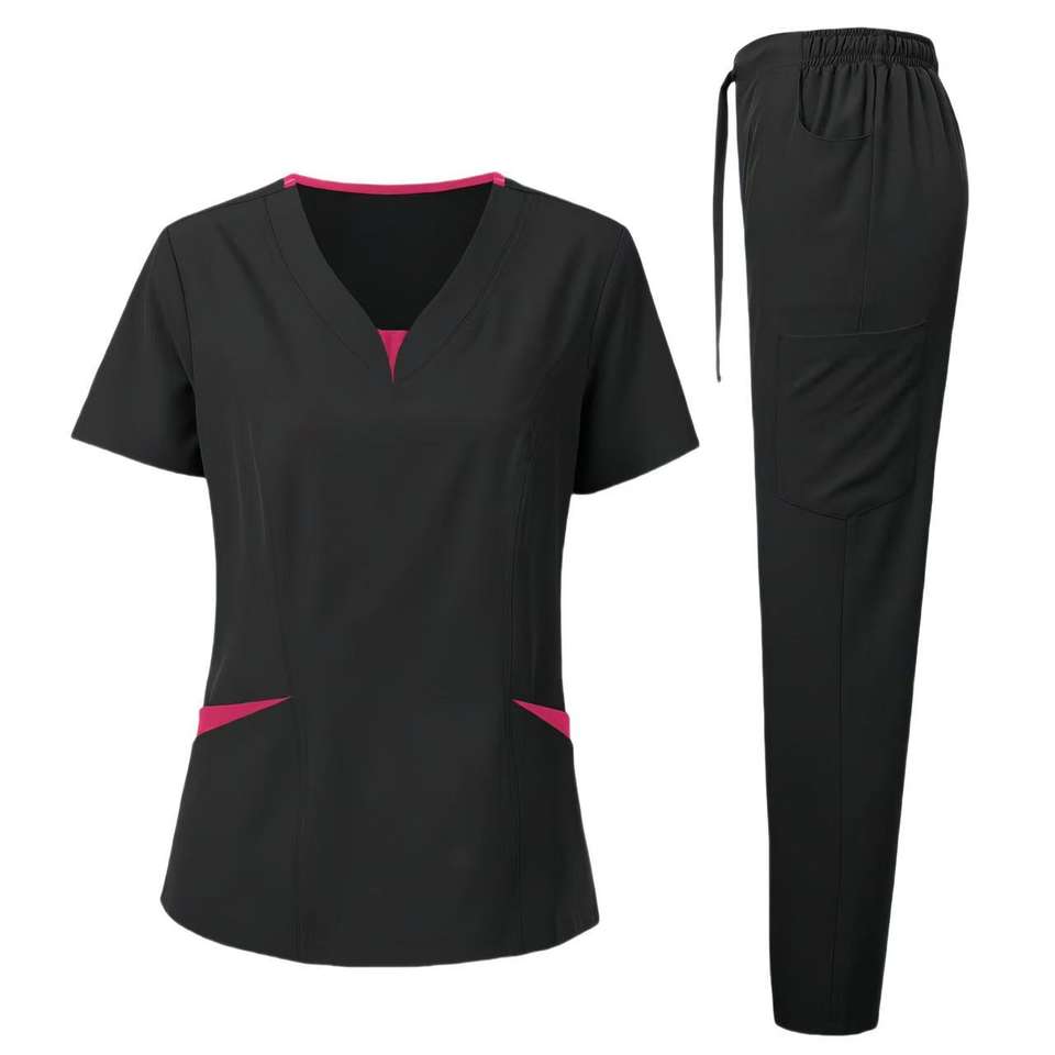 Stretch Scrubs Women Set Nursing Uniforms Clinical Scrubs Set Nurse Doctor Dustproof Workwear Medical Scrubs Top+ Jogger Pants
