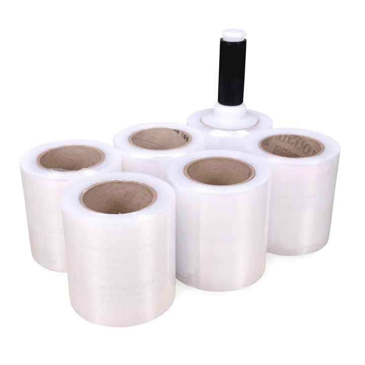 Stretch Wrap Plastic Handle Extra Sticky Clear Reinforced Grade High Gloss Plastic Wrap Film Great Moving Office Needs