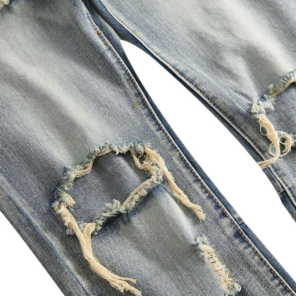 Stretchable Men Jeans Denim 100% Cotton Streetwear Distressed Oversized Washable Baggy Jeans Male Wide Leg Jeans for Boys