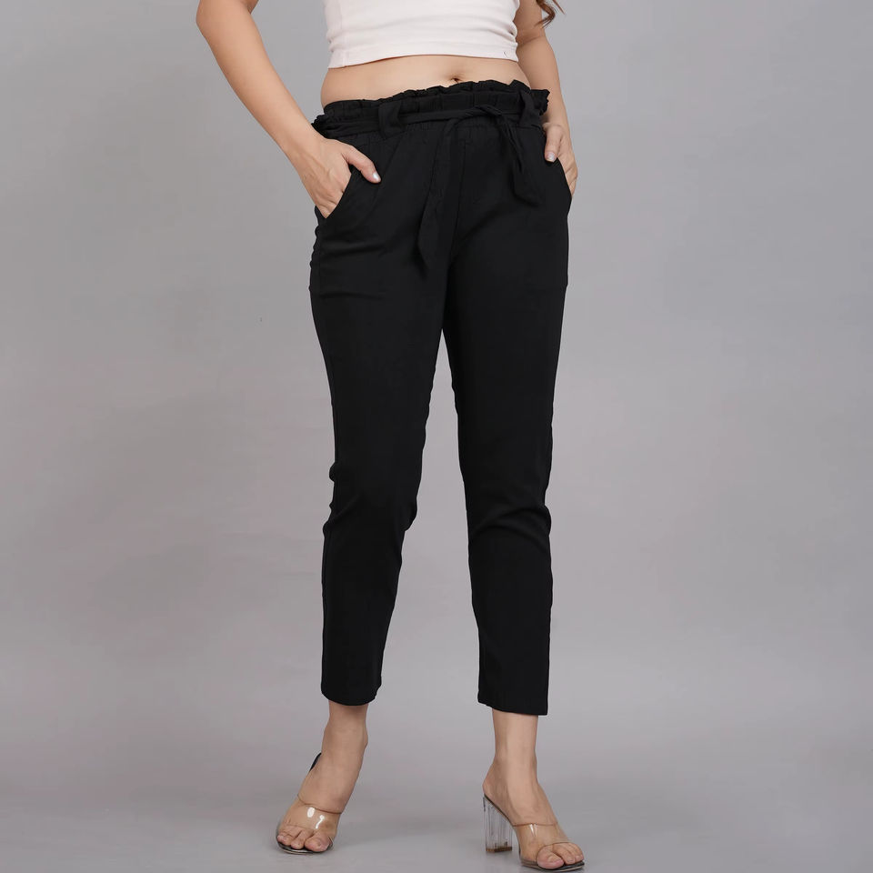 Stretchable Womens Black Lycra Trouser Pants Designed In Regular Fit For Comfortable Casual Office Travel And Daily Wear