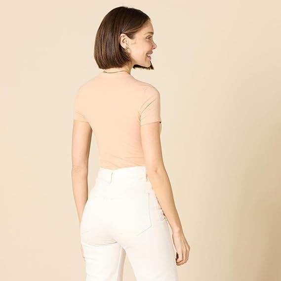 Stretchy Cotton Jersey T-Shirt Bodysuit for Women Slim-Fit Style Ideal for Casual Outfits, Layering, or Standalone Wear