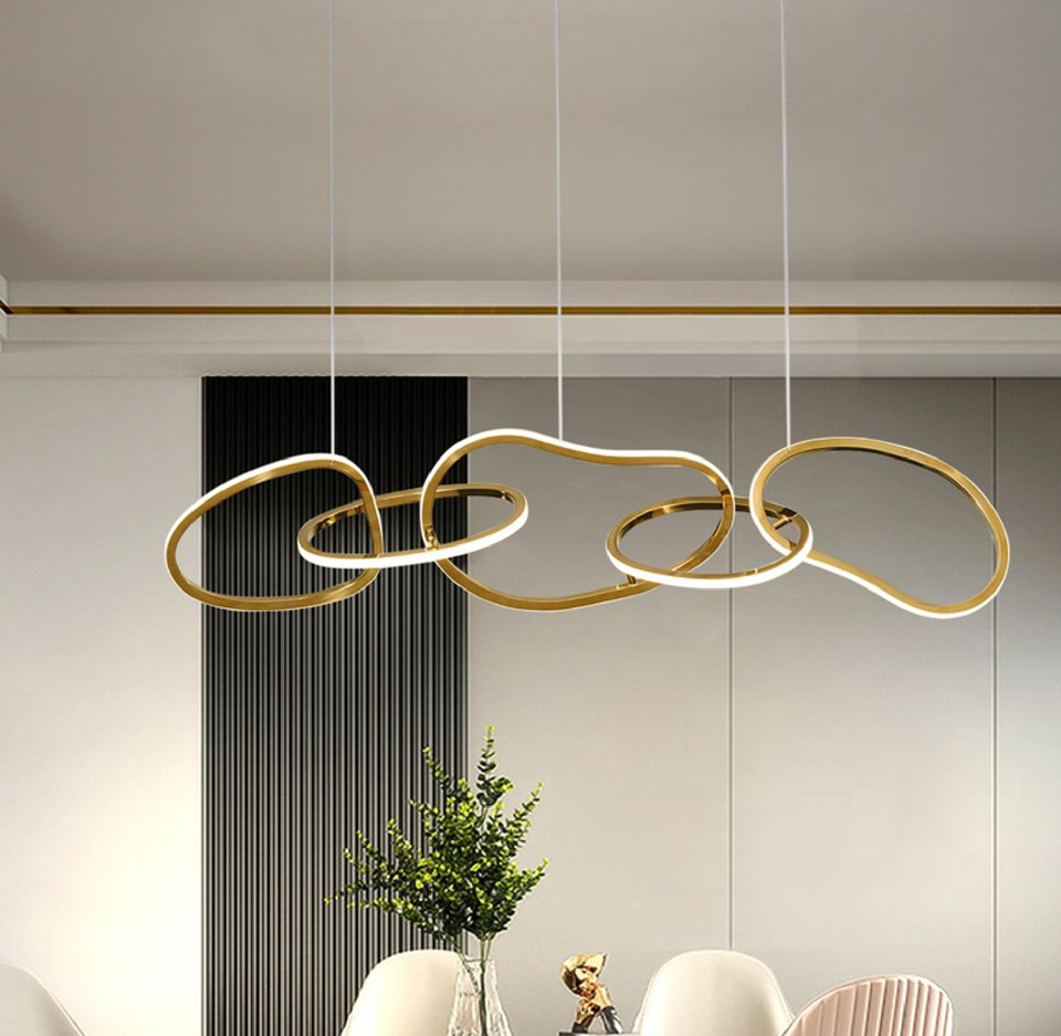 Striking black & gold linear rod chandelier, a modern statement for dining. Available at wholesale prices.