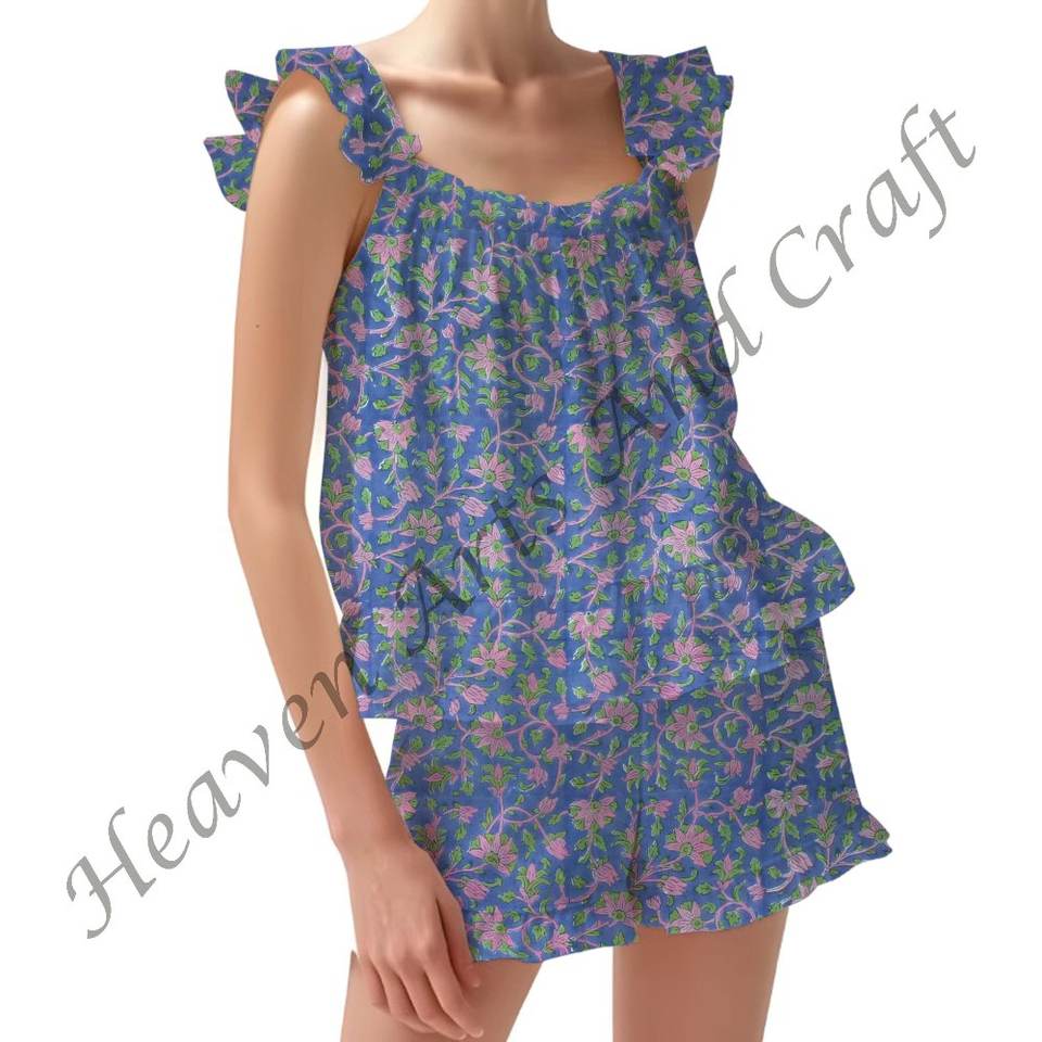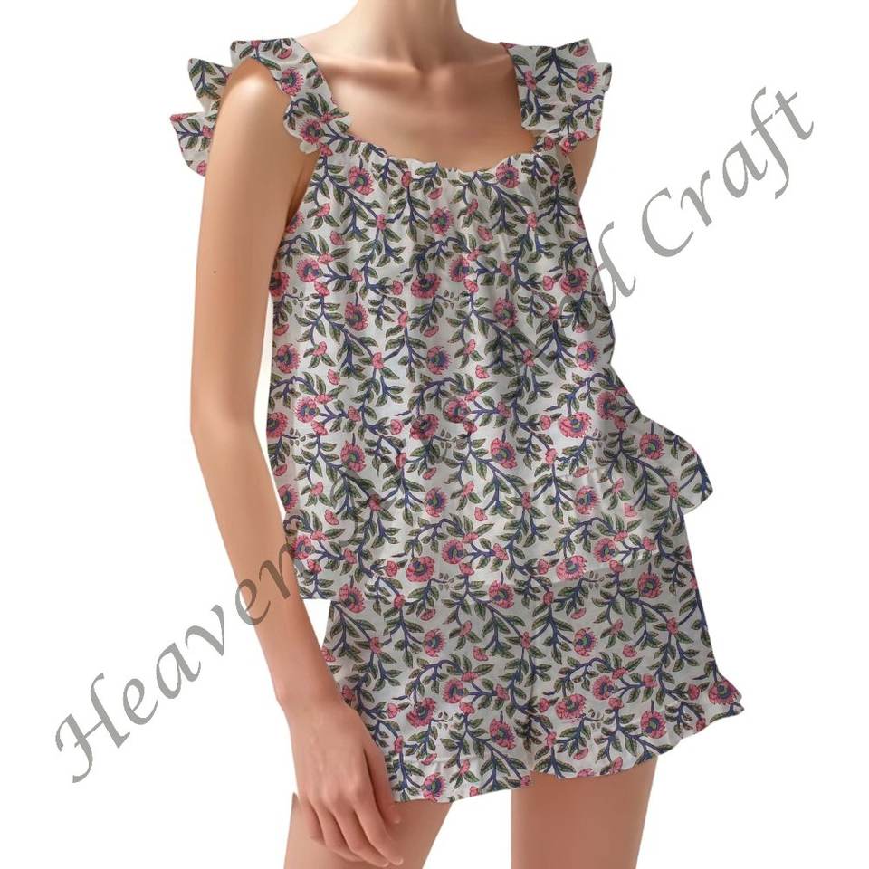 Product name:100% Cotton Printed Ruffle Pajama Set