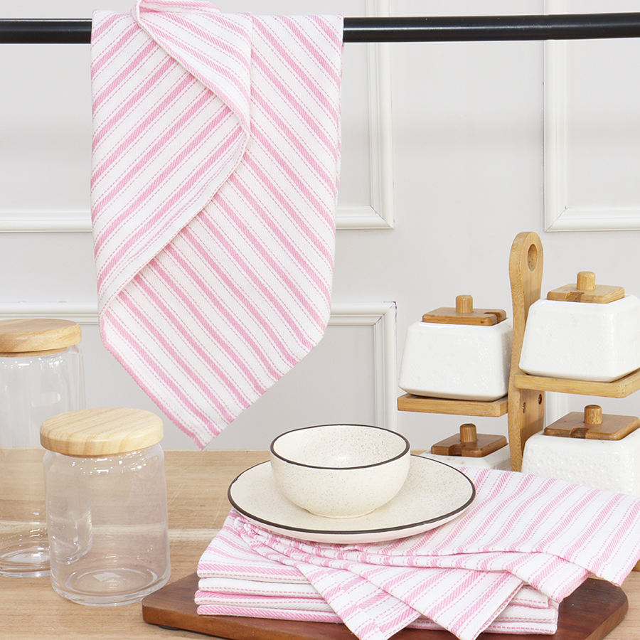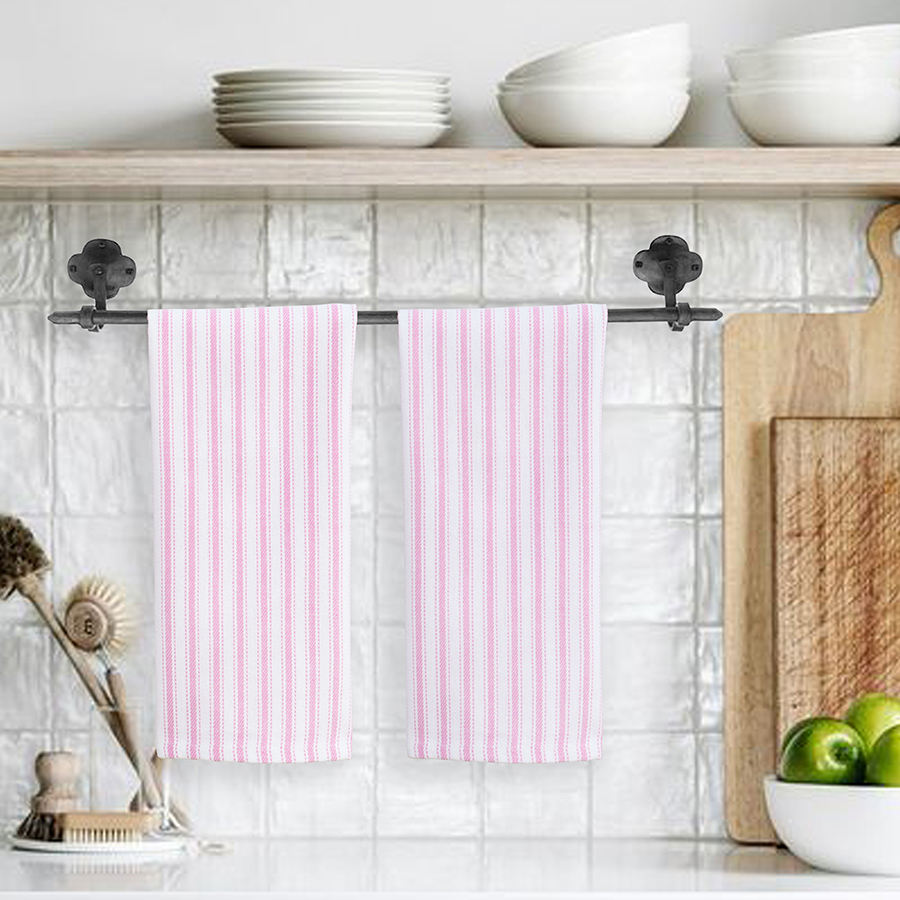 Stripe Kitchen Towels Hanging Loop Dish Towels Absorbent Washable Reusable 18x28 Inch Trendy Spring French Stripe - Pink