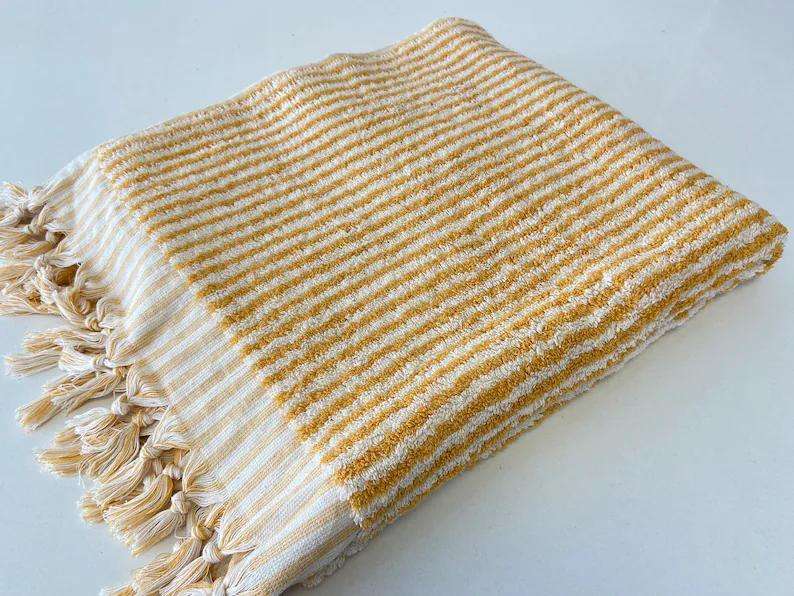 Stripe Printed Handloomed Organic Turkish 100% Cotton Square Peshtemal Hammam Bath Towel Multi-purpose 90x180cm 900gr