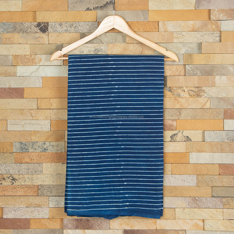 Stripe Printed Handmade Indian Organic Cotton Running Dress Fabric Indigo Blue Curtain Clothing Girls Suits Coverings Sewing