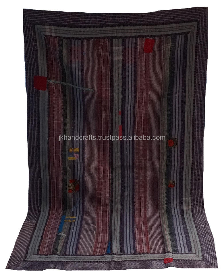 Stripe Sari Kantha Quilt Vintage Handmade Indian Cotton Kantha Blanket