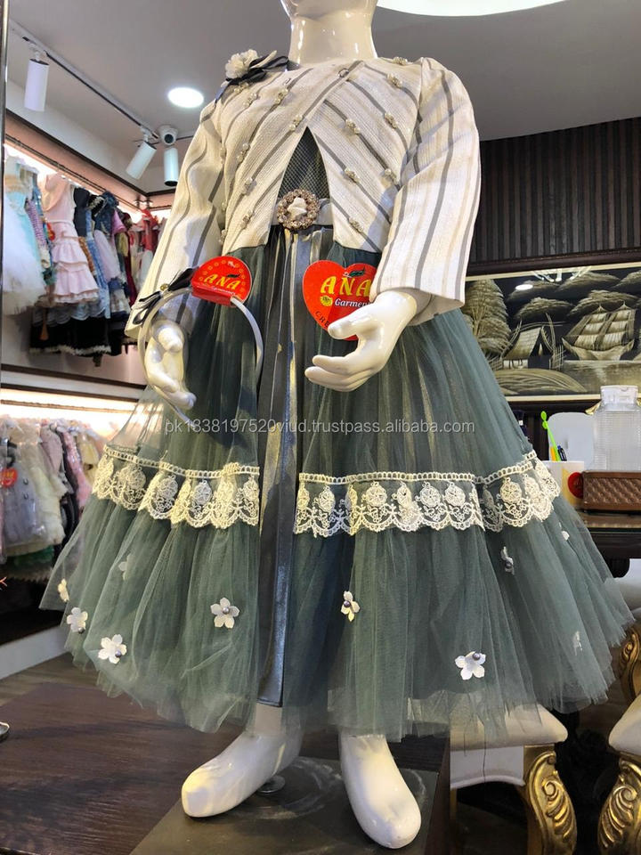 Product name:stripe V koti with fancy net frock new party wear fancy design