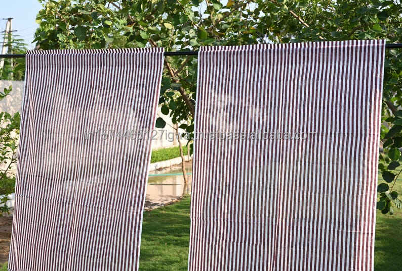 Striped Cotton Hand Block Curtain Panels Set of 2 for Bedroom Living Room Farmhouse-Window Treatments and Decorative Valances