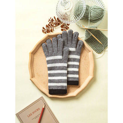 Striped Gray Woolen & Cashmere Gloves & Mittens