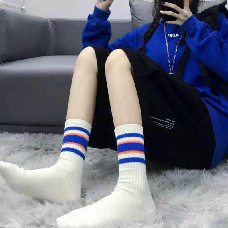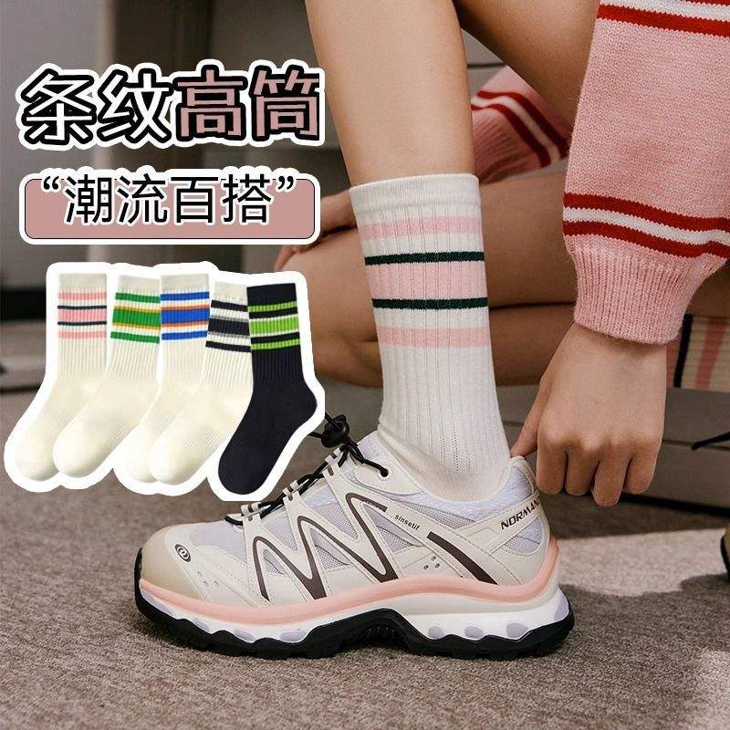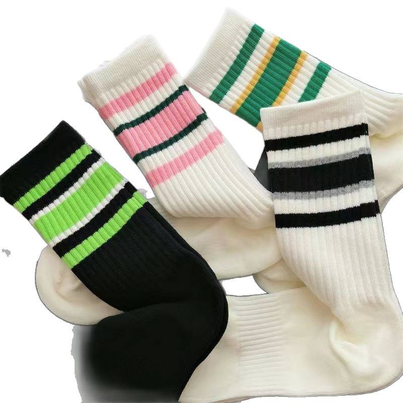 Striped Mid Calf Athletic Socks Color Block Design One Size Fits All Casual Sport Wear