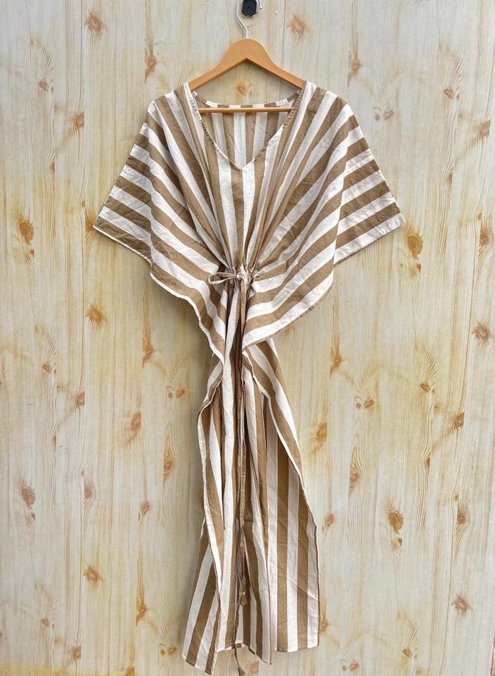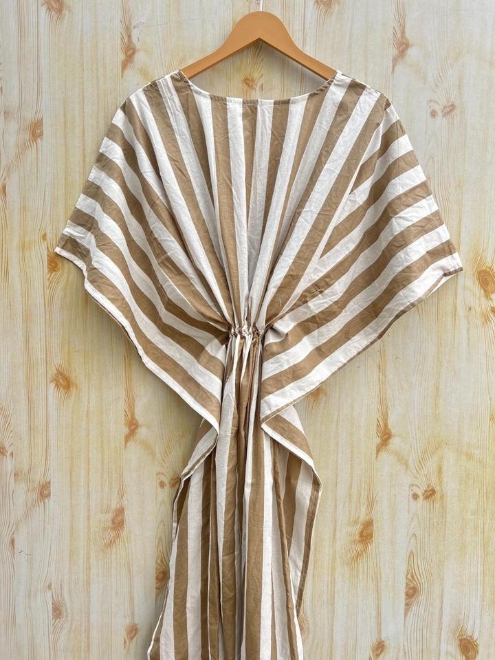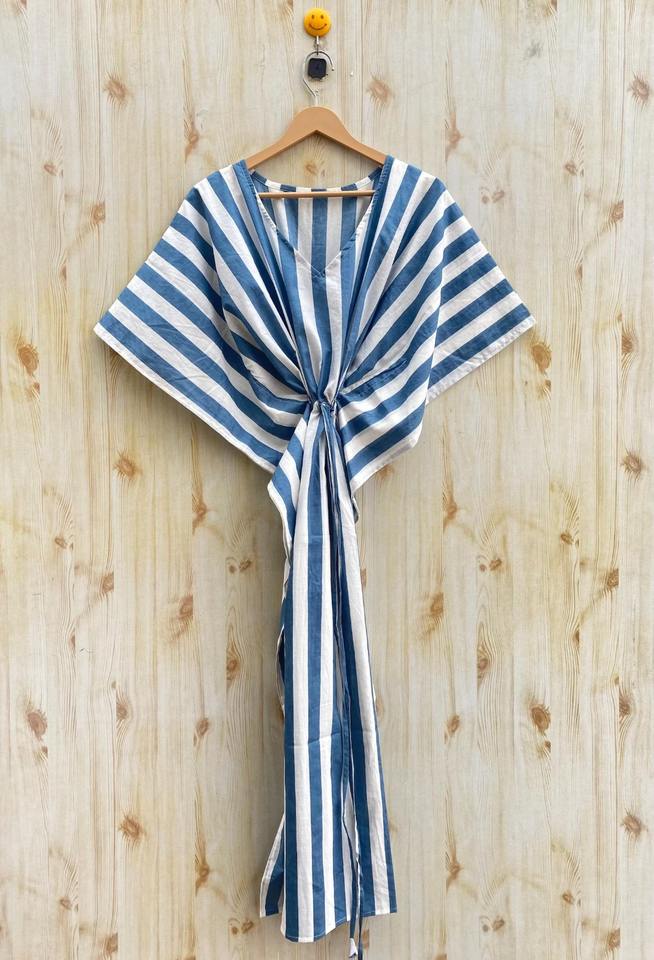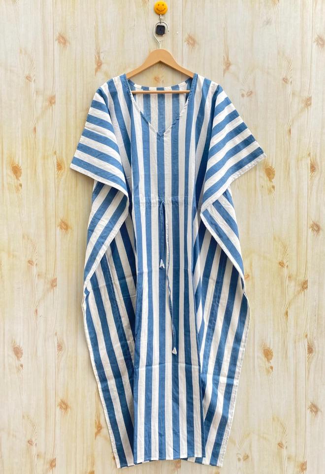 Striped Print Cotton Kaftan Woman's Night Suit Casual Maxi Dress Natural Waistline Perfect Beach Cover Bikini Cover Mom's Gift