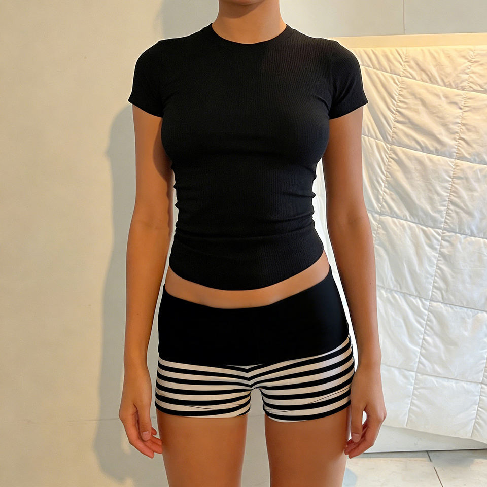 Striped low-rise rolled-up mini shorts Y2K Retro Slim Fit Stretch Casual Street Sexy Shorts