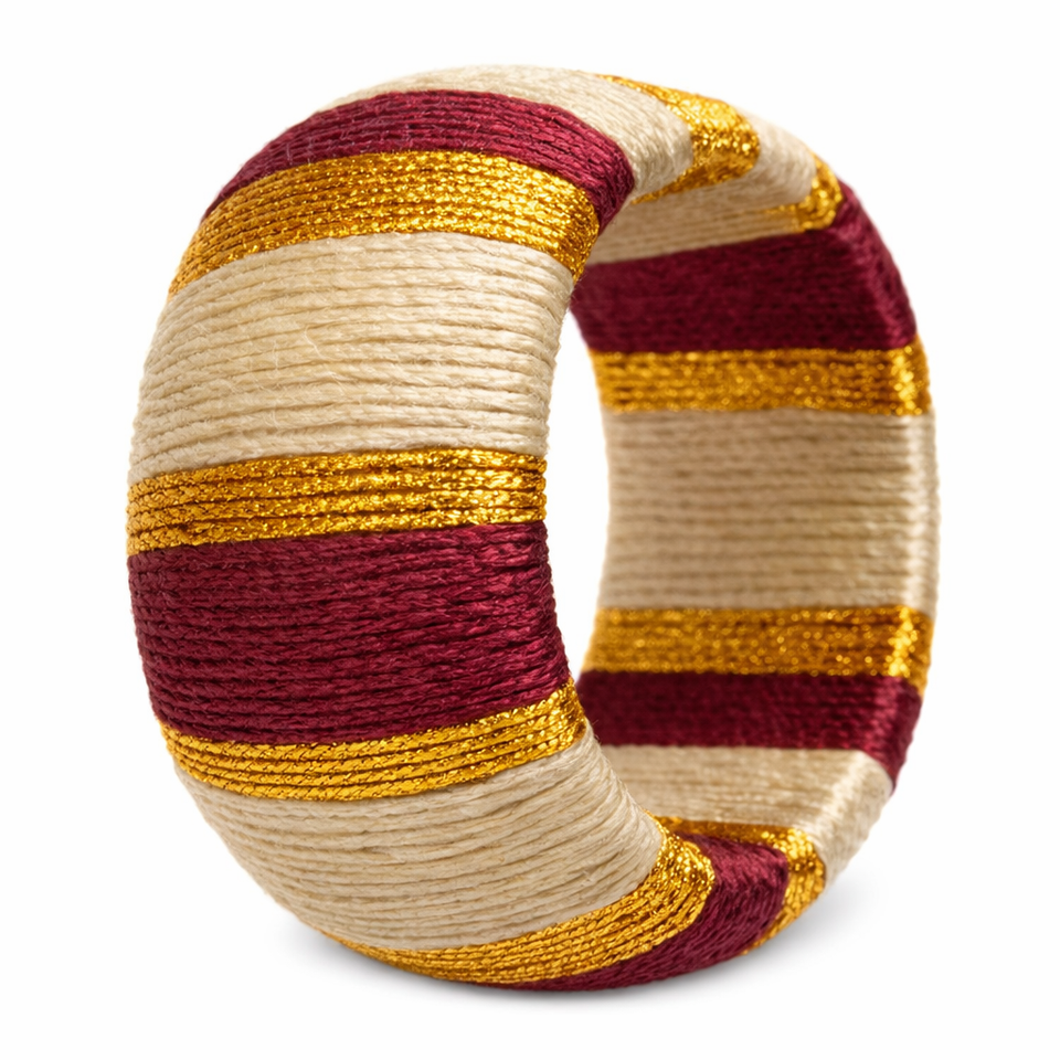 Stripped Pattern Golden Beige And Maroon Multicolor Handcrafted Trending Fashion Cuff Bracelets Natural Elegant Fancy Bracelet