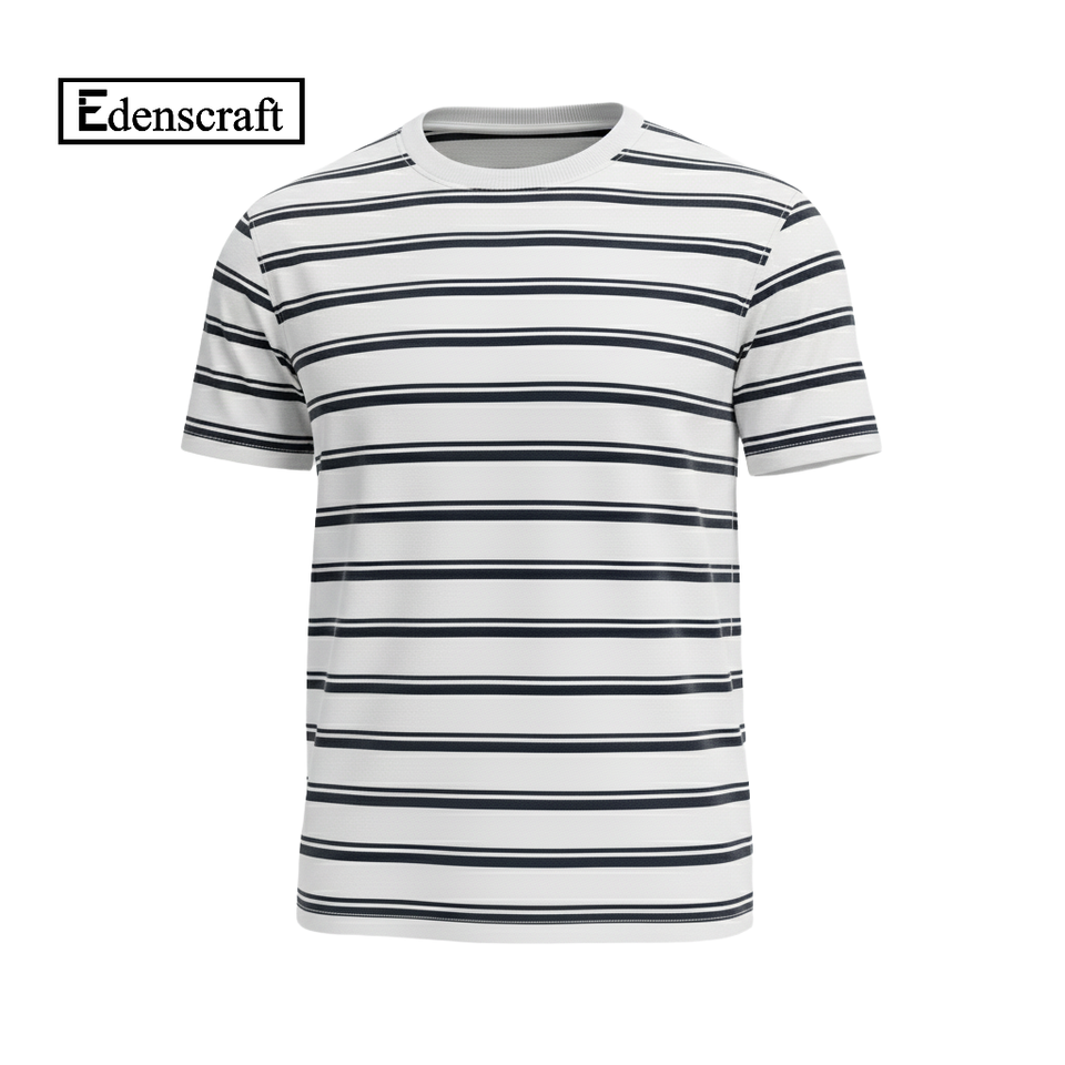 Striped Regular O-Neck Men's T-Shirt 100% Cotton Fleece Anti-Wrinkle Custom Production Wholesale Bangladesh OEM Bulk Order High