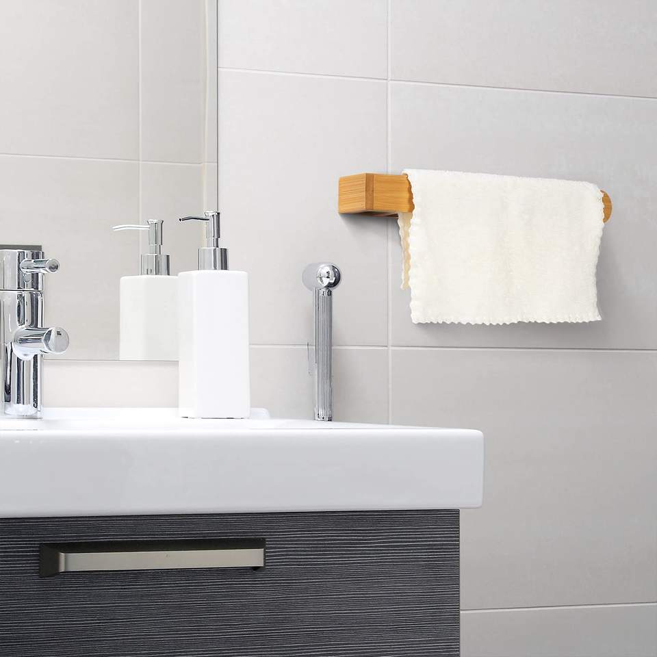 Strong Adhesive Bamboo Towel Rack No Drilling Required-Bathroom and Kitchen Towel Bar for Living Room for Home Use