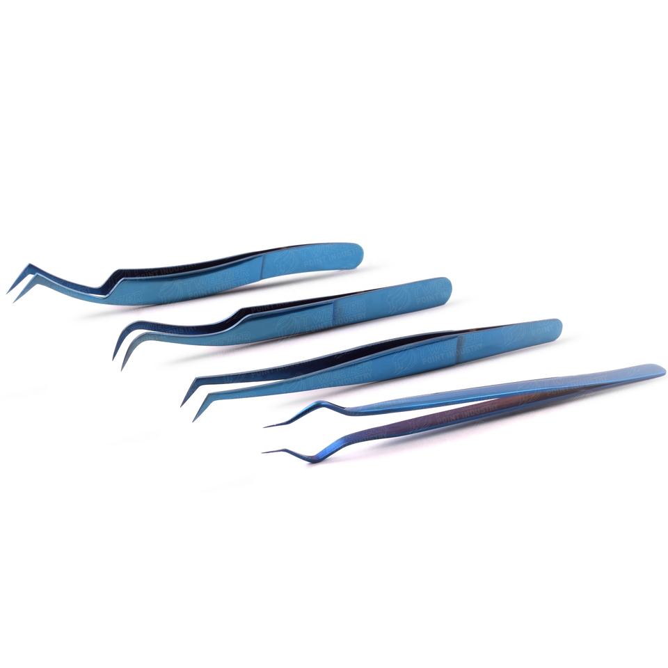 Strong Curved Volume Lash Tweezers Non Magnetic High Accuracy Plasma Blue Color Stainless Steel Eyelash Extension Tweezers