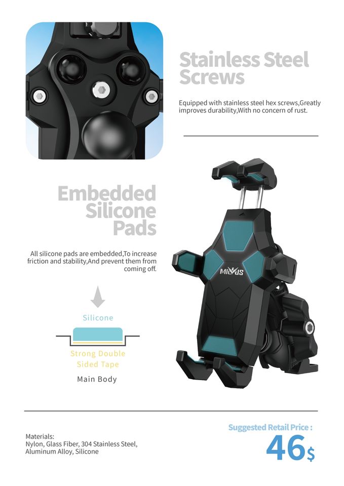 Strong-Grip Motorcycle Mount for Long Drive Stability Heat-Resistant Alloy Body Mobile Phone Holder