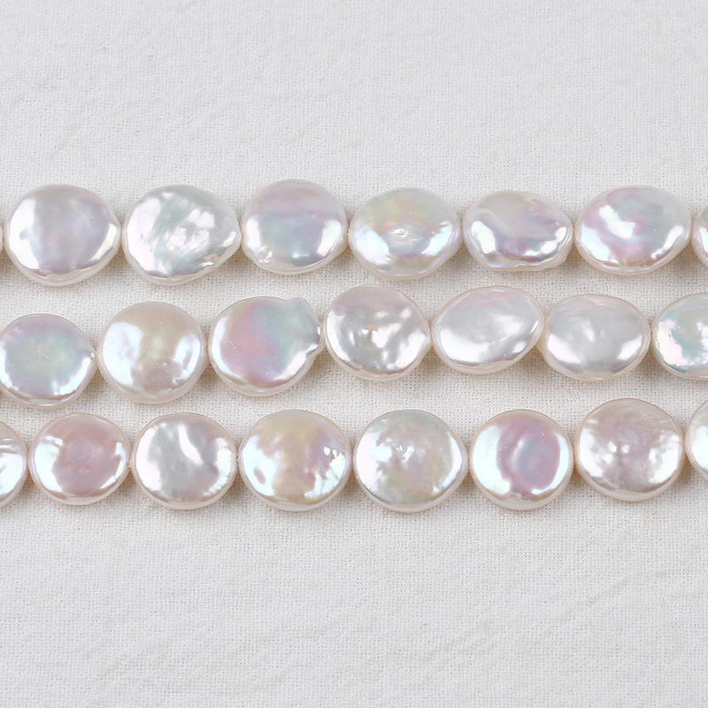 Strong Natural White Freshwater Pearl Baroque Button Bead 18cm12-13mm Loose DIY Material Jewelry Versatile Color Options