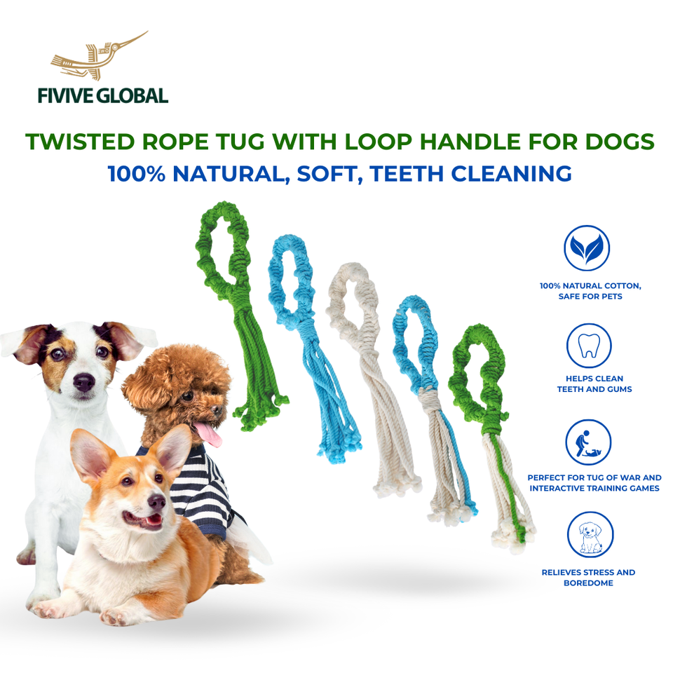 Strong Twisted Cotton Rope Tug Dog Toy With Loop Handle, Encourages Healthy Chewing, Tug Of War Fun And Long-Lasting Engagement