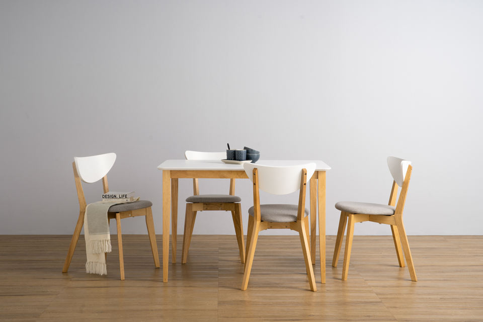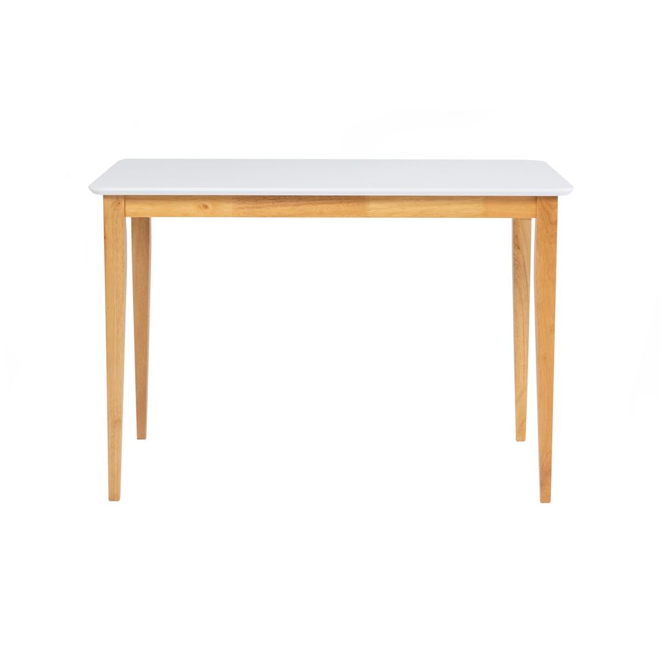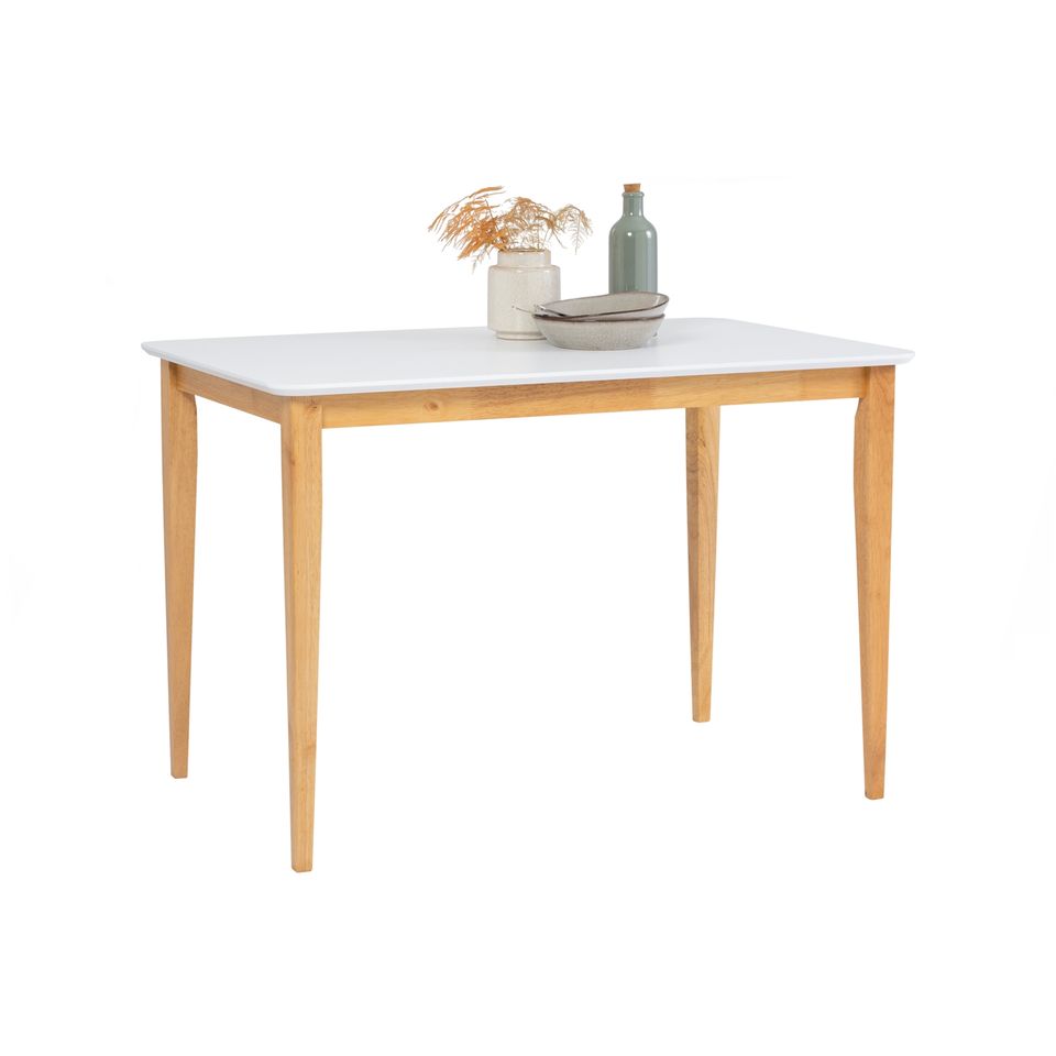 Strong White Rectangular Dining Table in Natural Malaysian Oak Solid Wood Legs and Scandinavian 4-Seater Apartment Kitchen Table