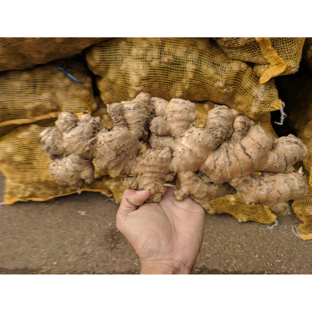 Strong tasting fresh ginger with fibrous skin juicy body spicy scent and bold consistency perfect for flavoring and seasoning
