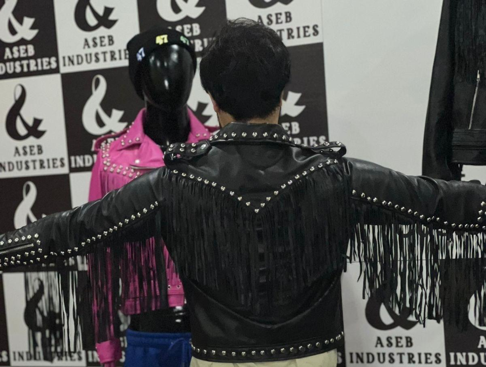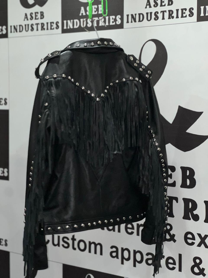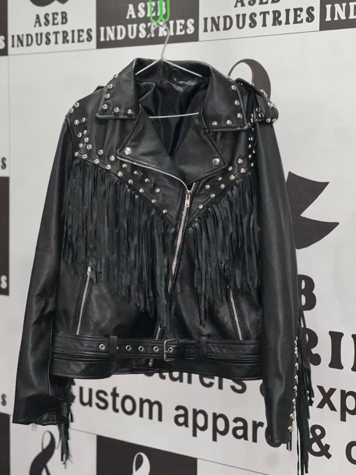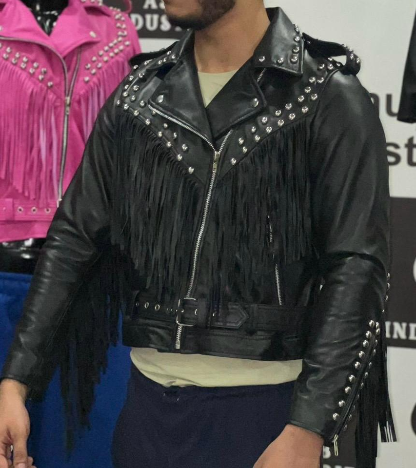 Studded And Fringe Style Leather Fashion Jacket in Geniun Sheep Leather Slim Fit Flop Style Zipper Leather Jacket