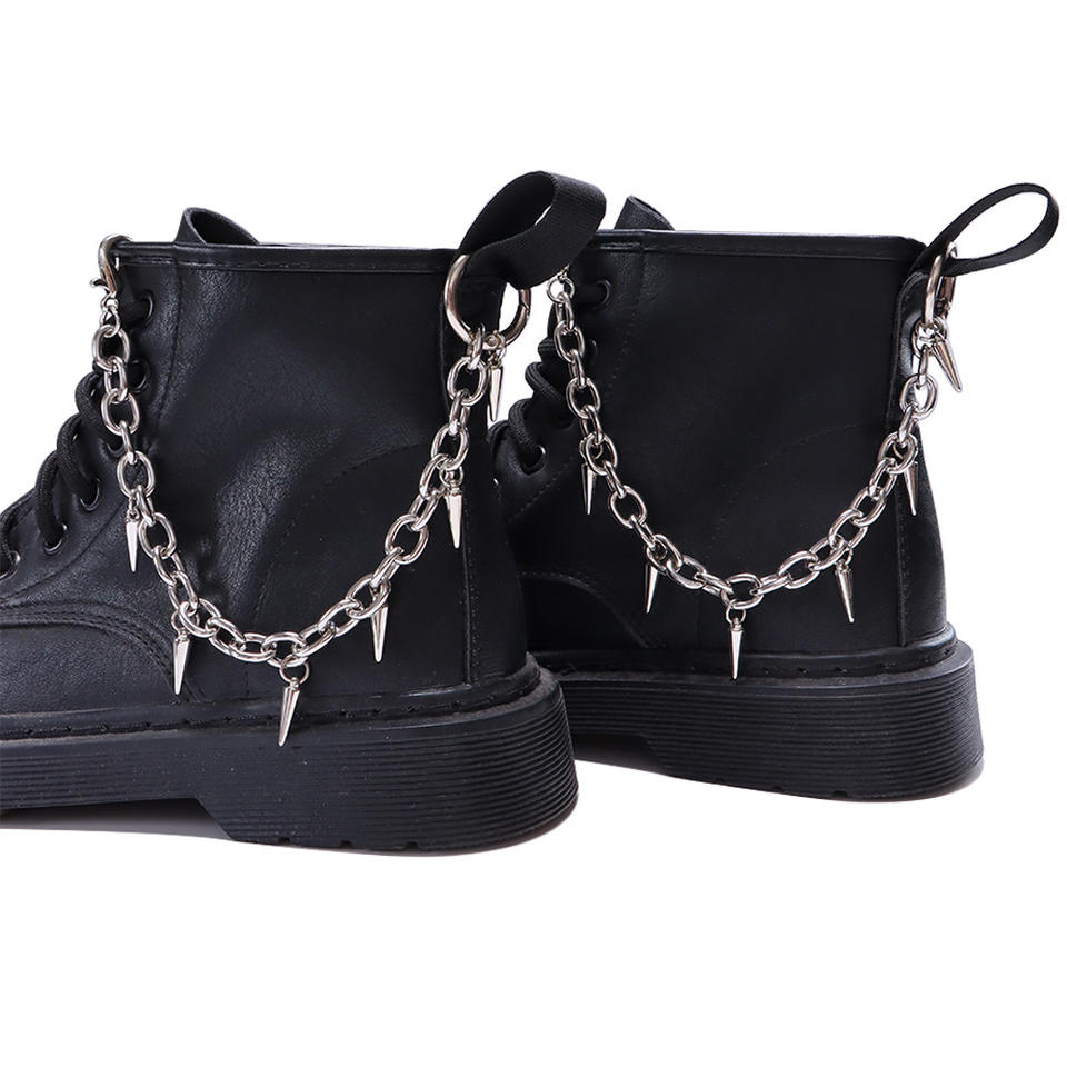 Studded Chain Shoe Chain For Combat Boots Flat Heel Round Toe Fashion Trend Accessory Yiwu Origin